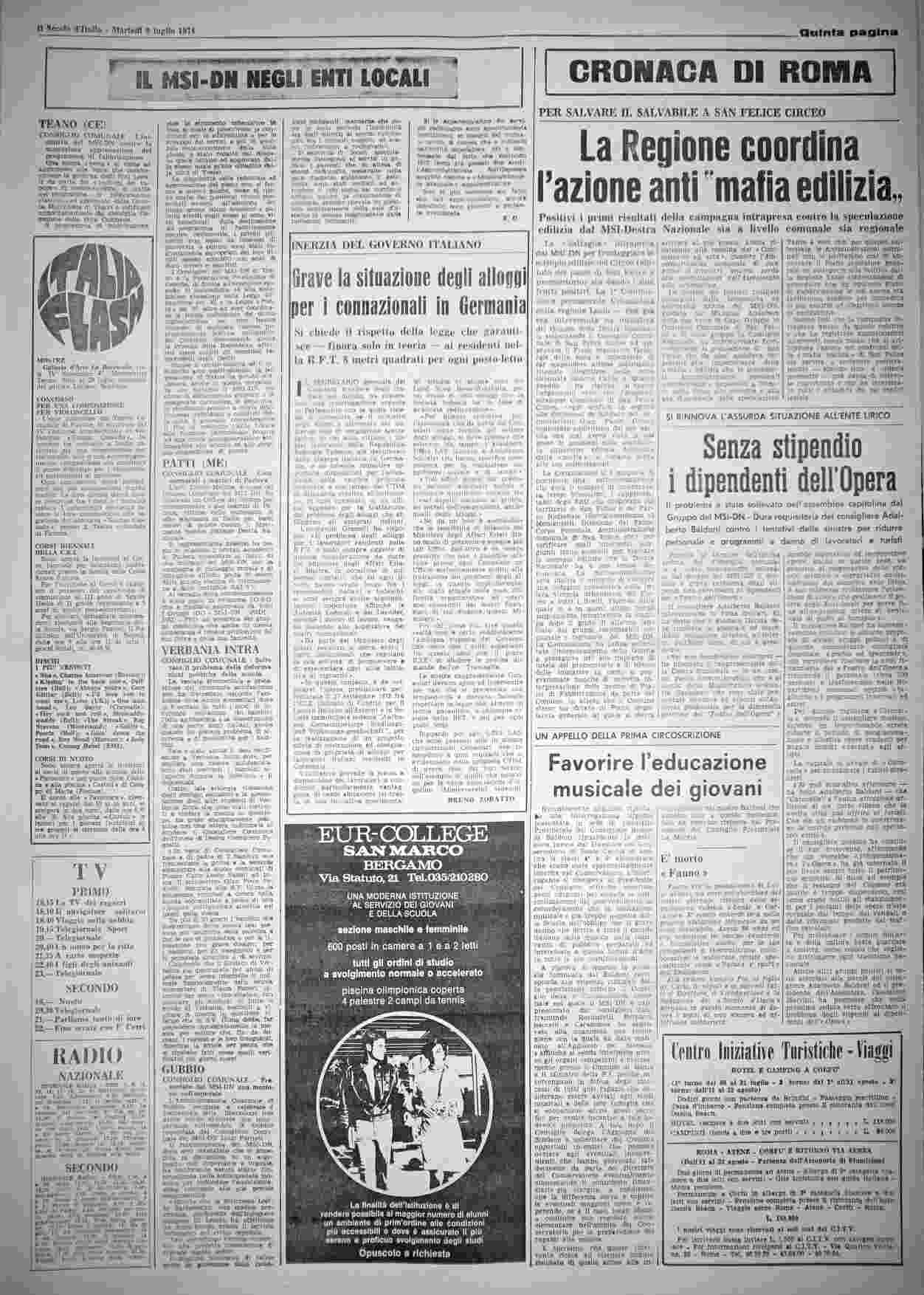 martedì 9 luglio 1974