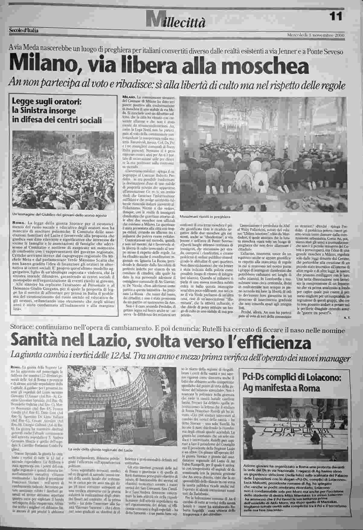 mercoledì 1 novembre 2000