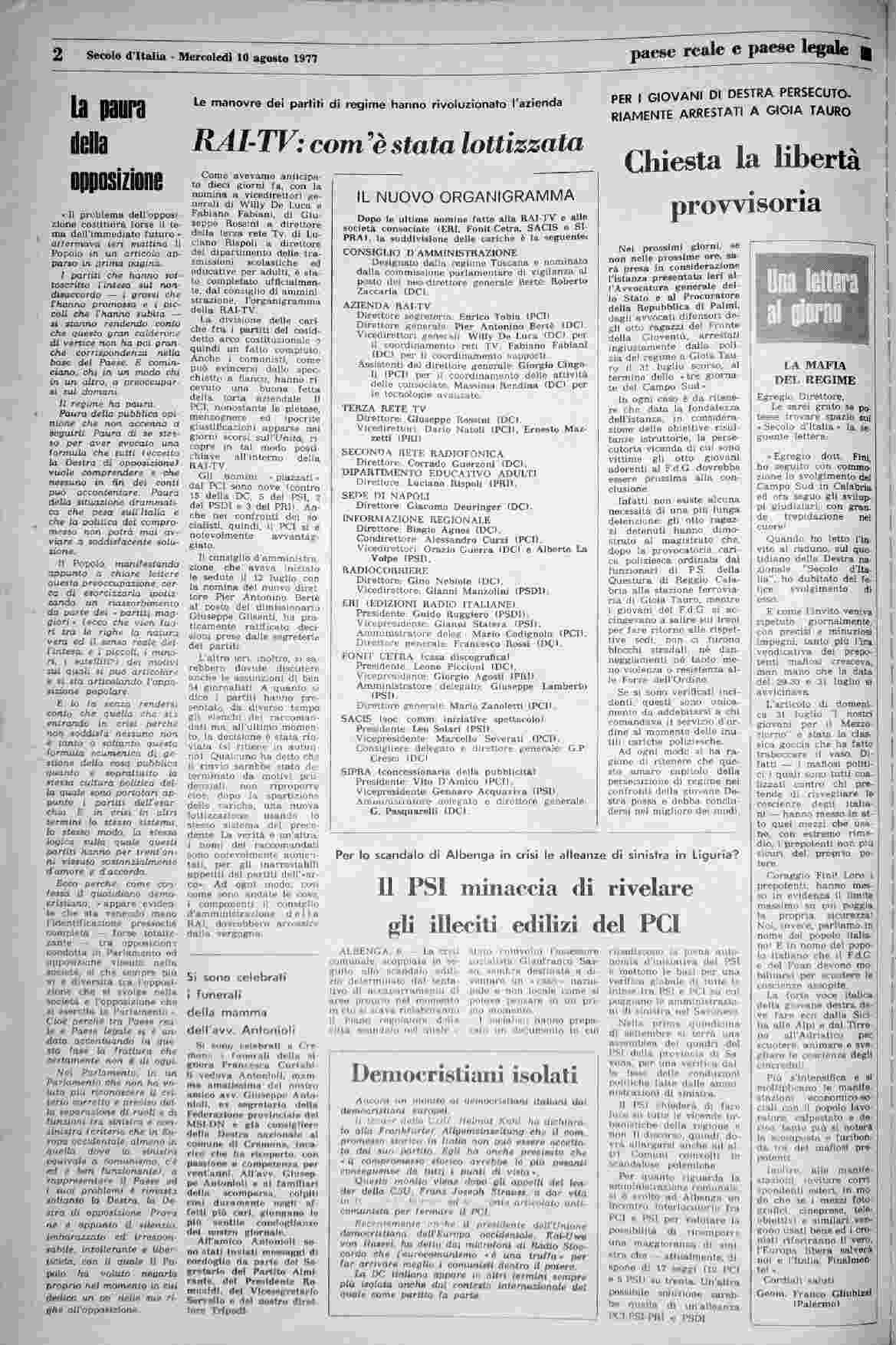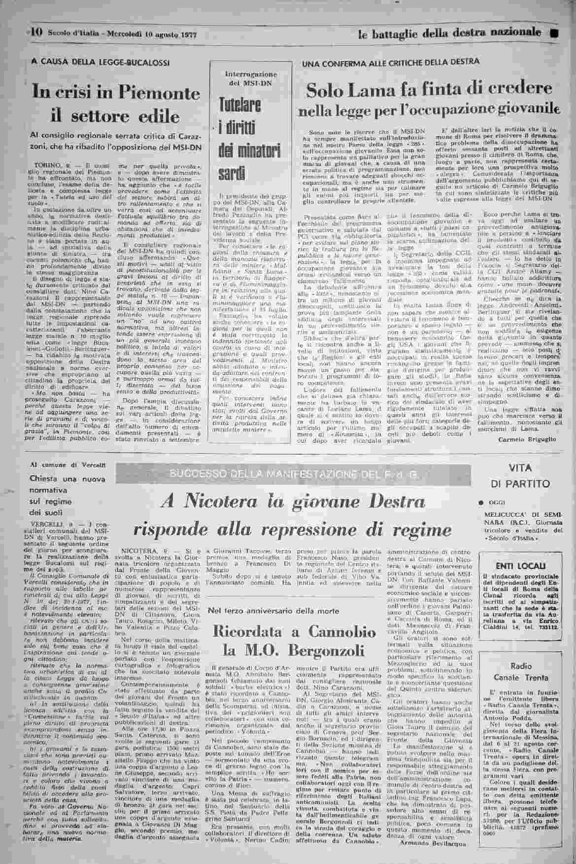 mercoledì 10 agosto 1977
