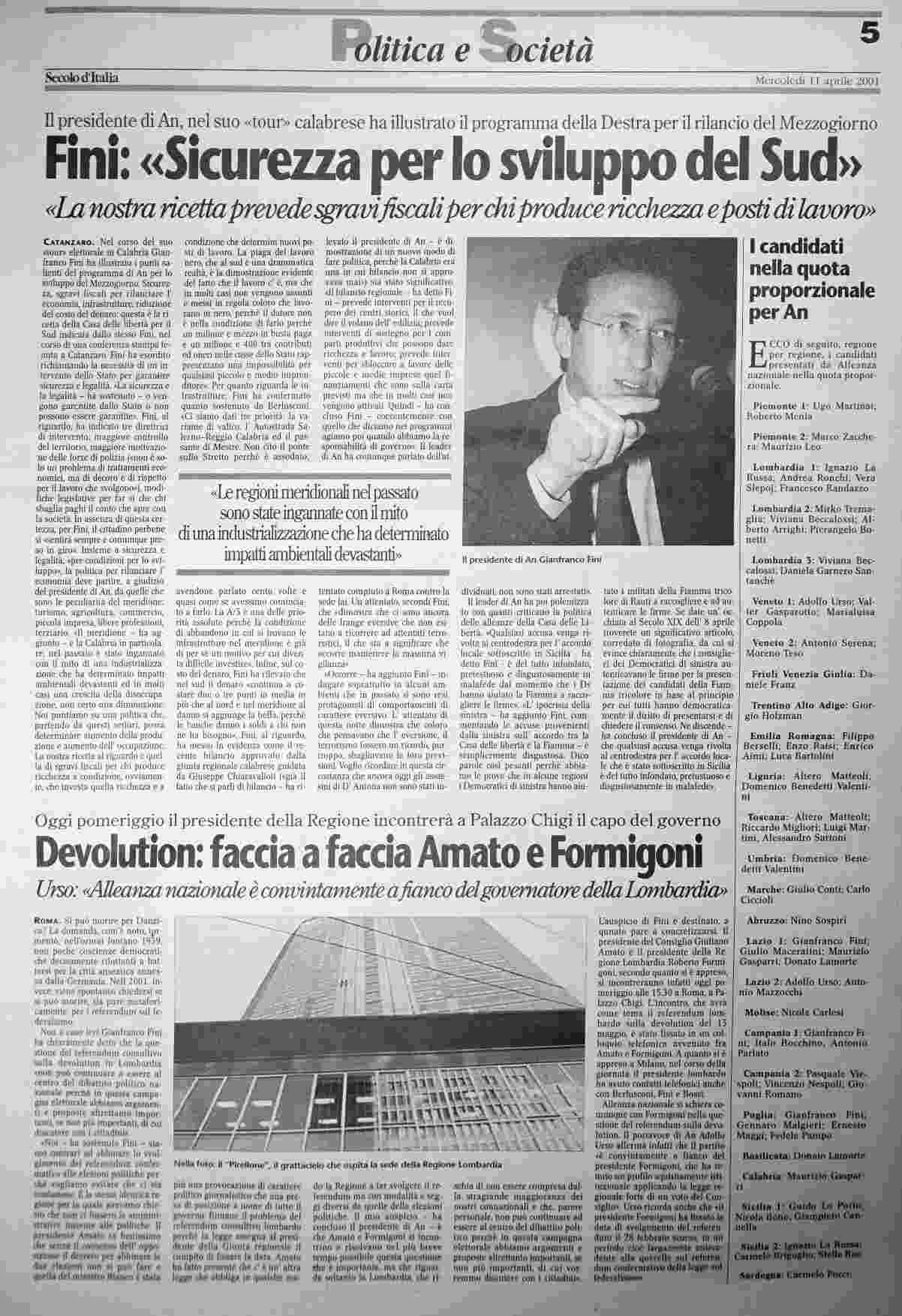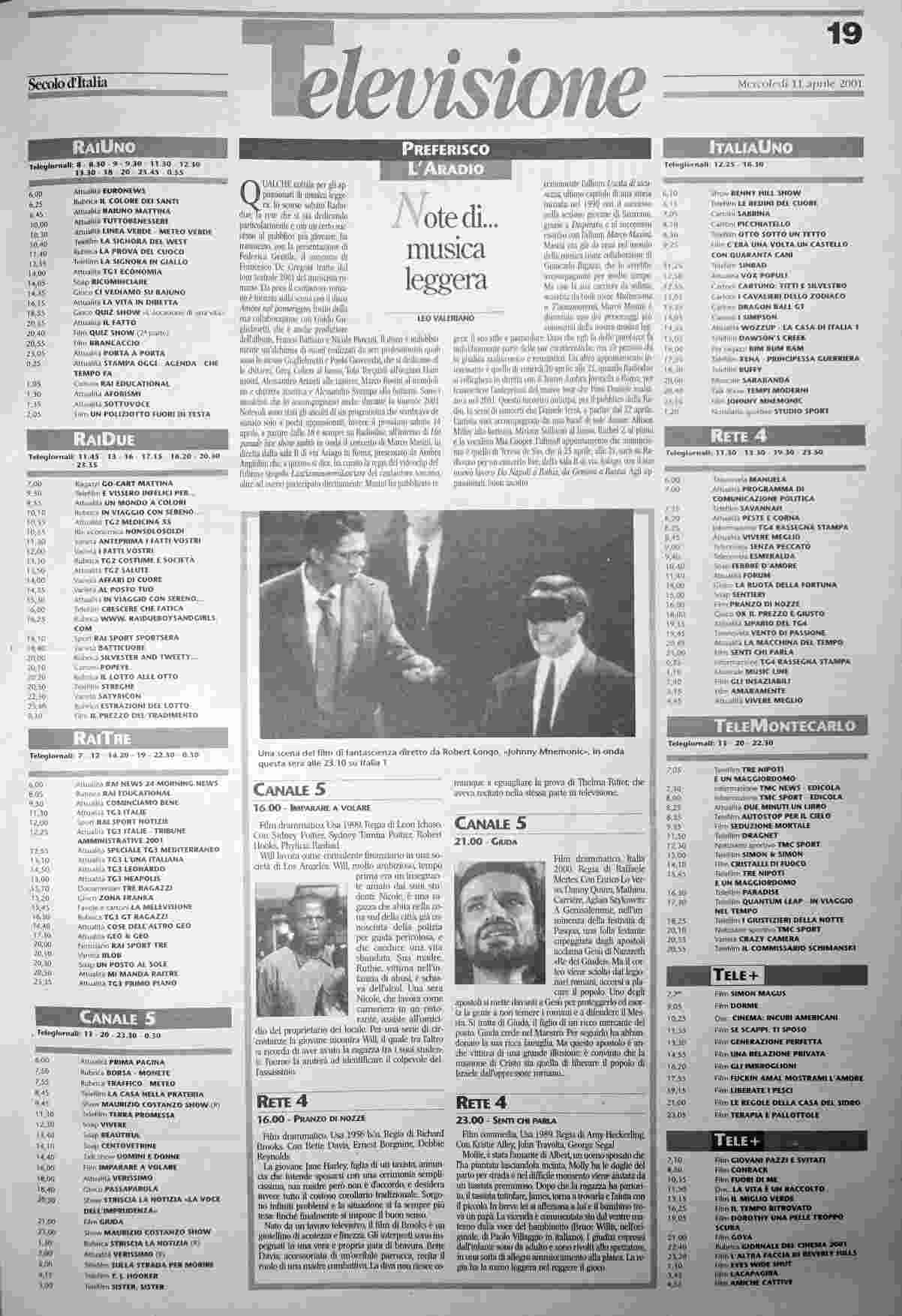mercoledì 11 aprile 2001