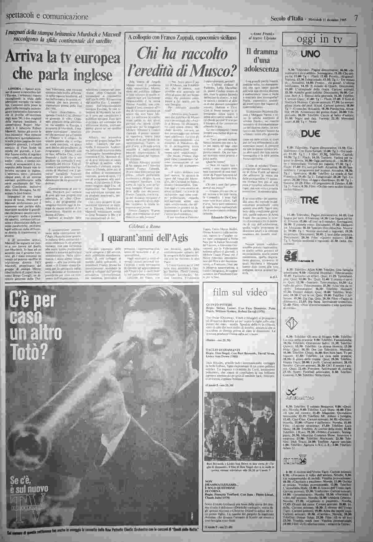 mercoledì 11 dicembre 1985