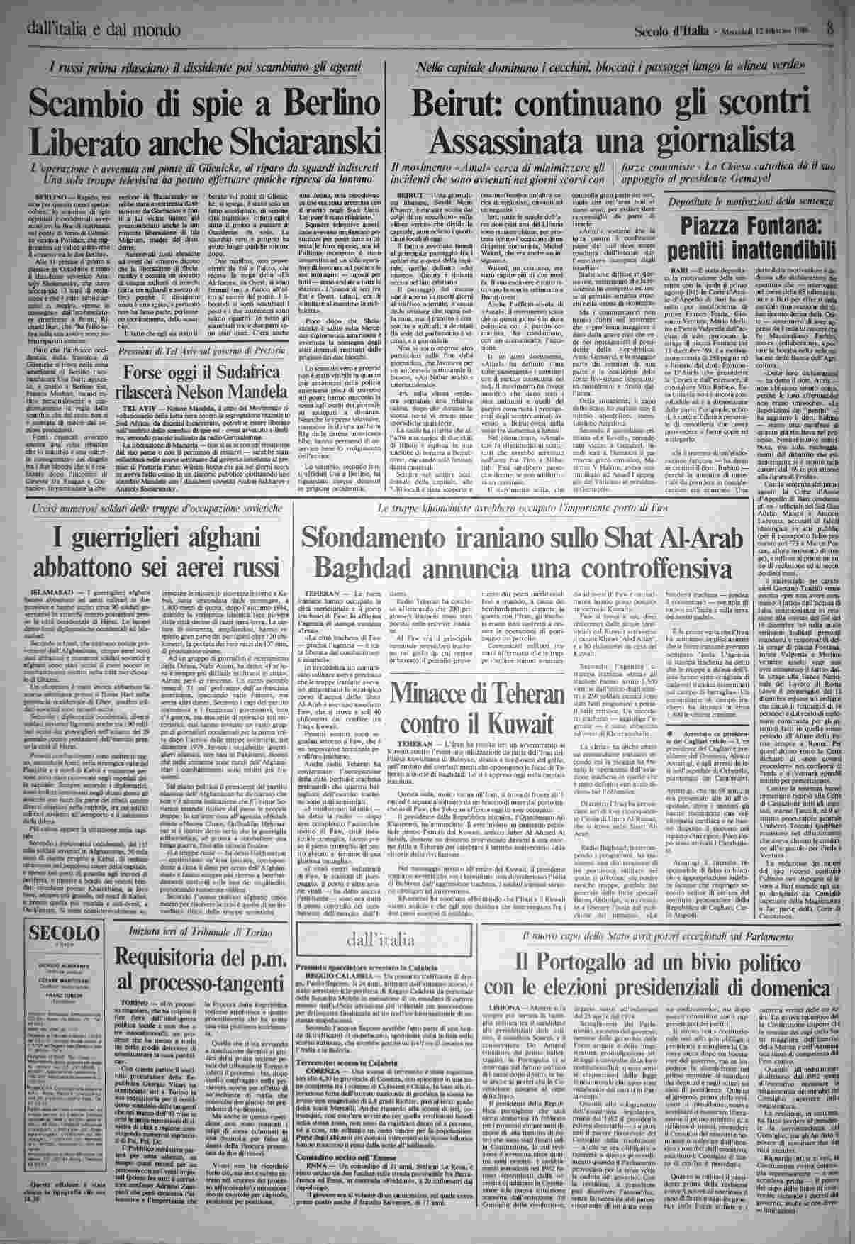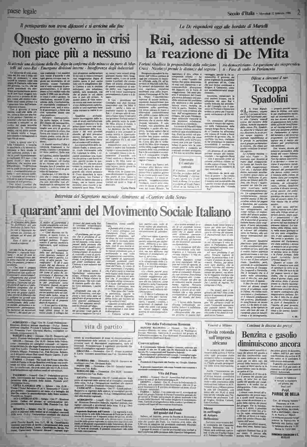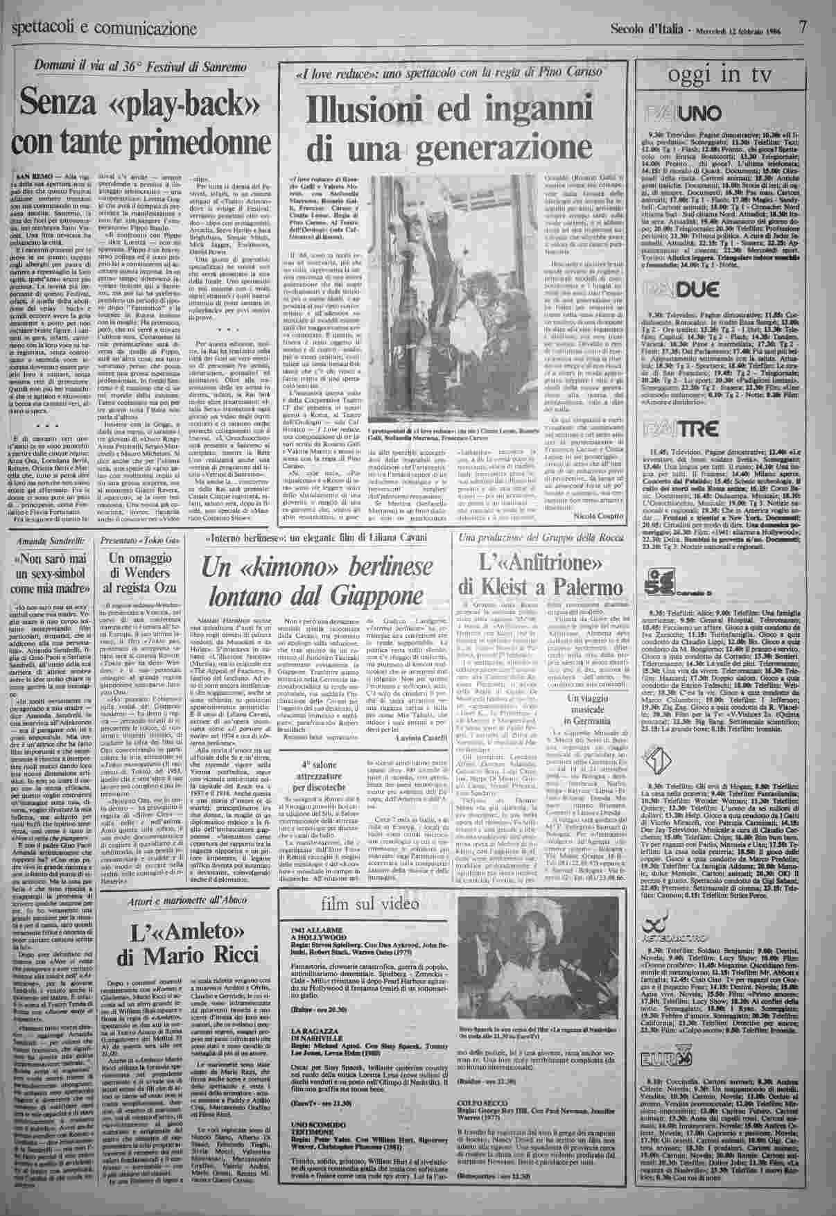 mercoledì 12 febbraio 1986