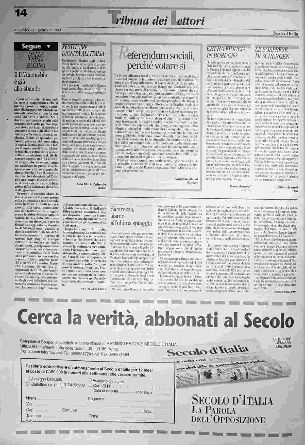 mercoledì 12 gennaio 2000
