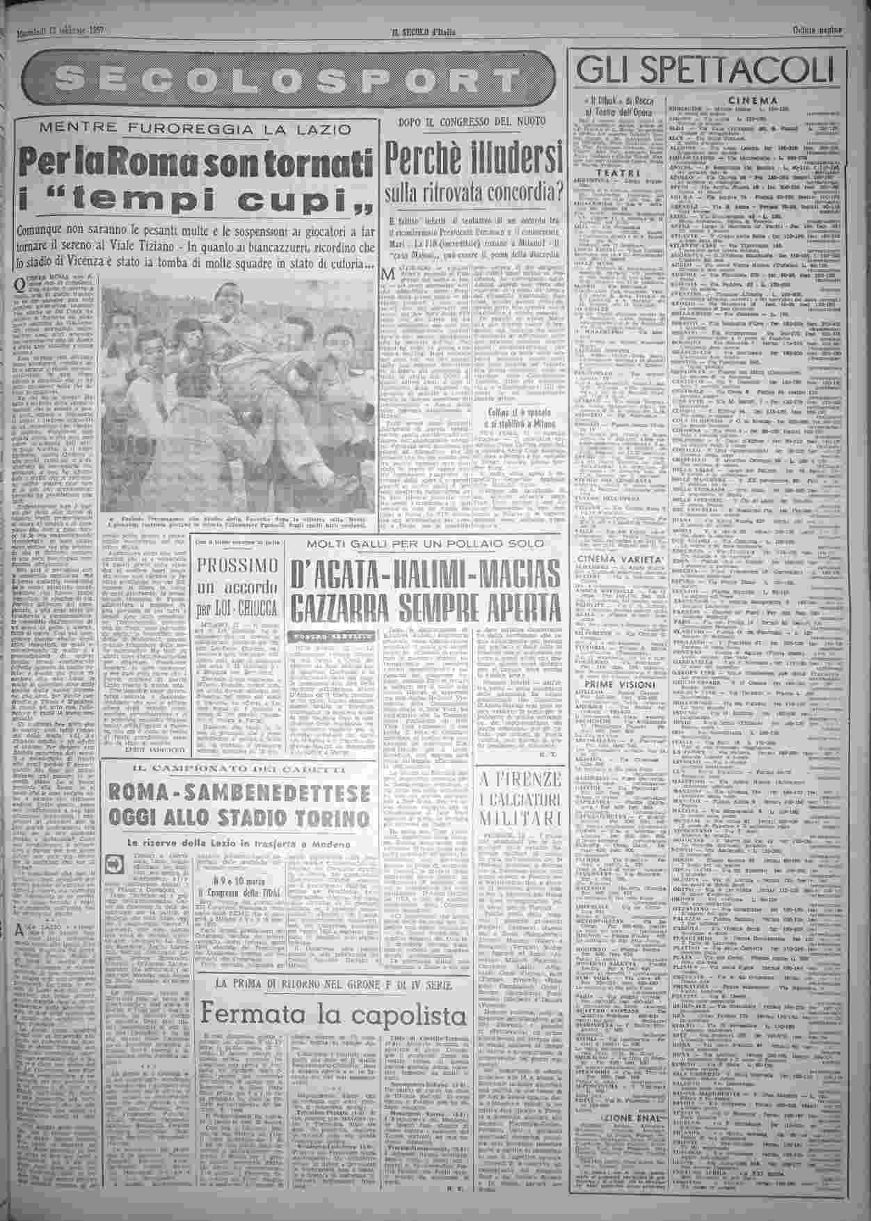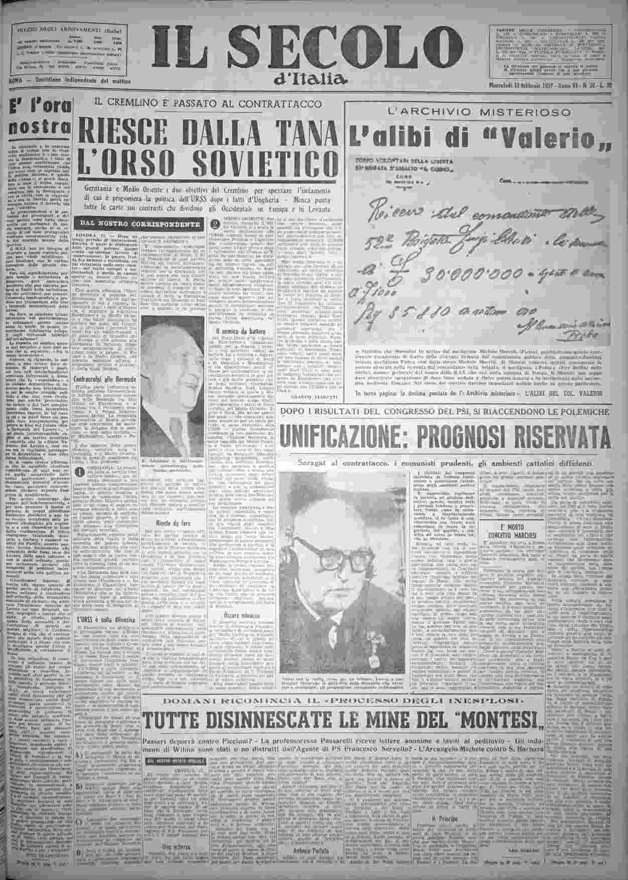 mercoledì 13 febbraio 1957