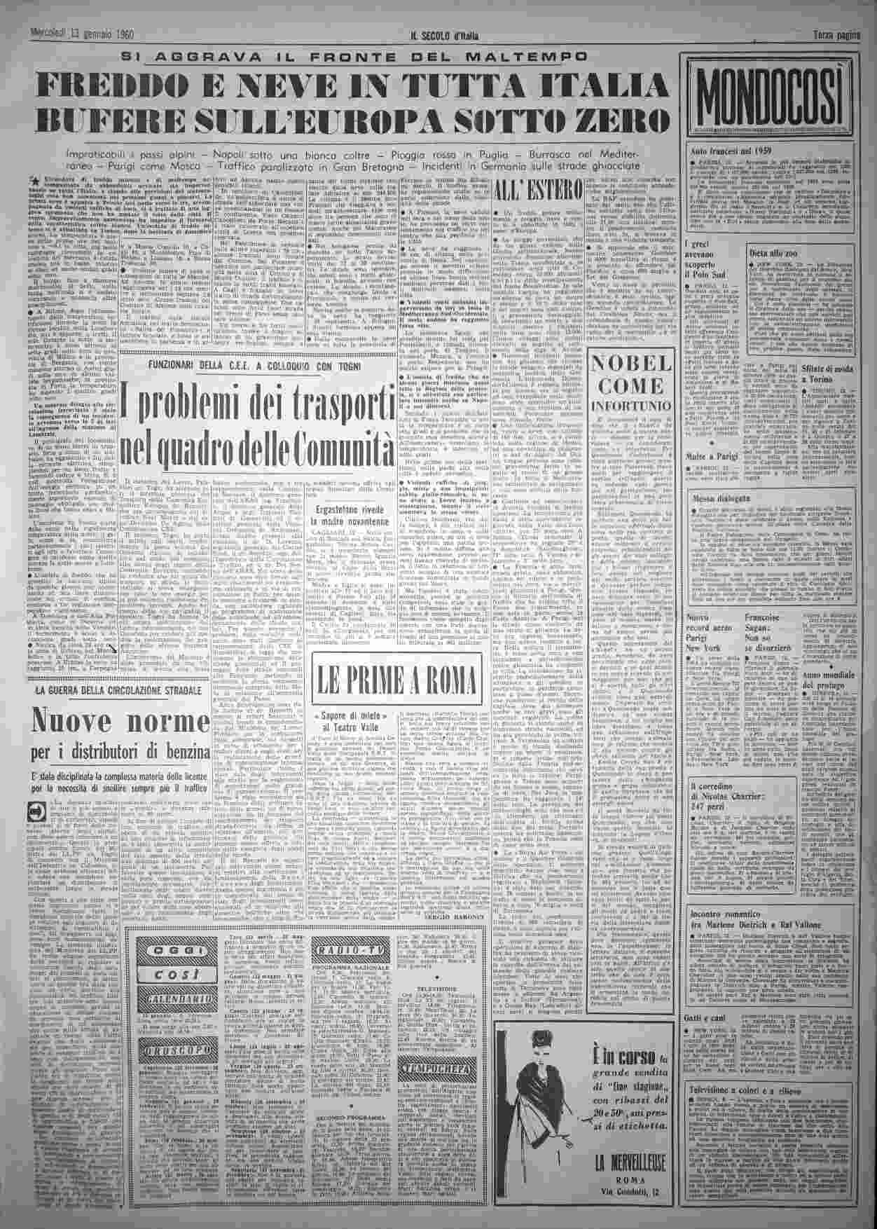 mercoledì 13 gennaio 1960
