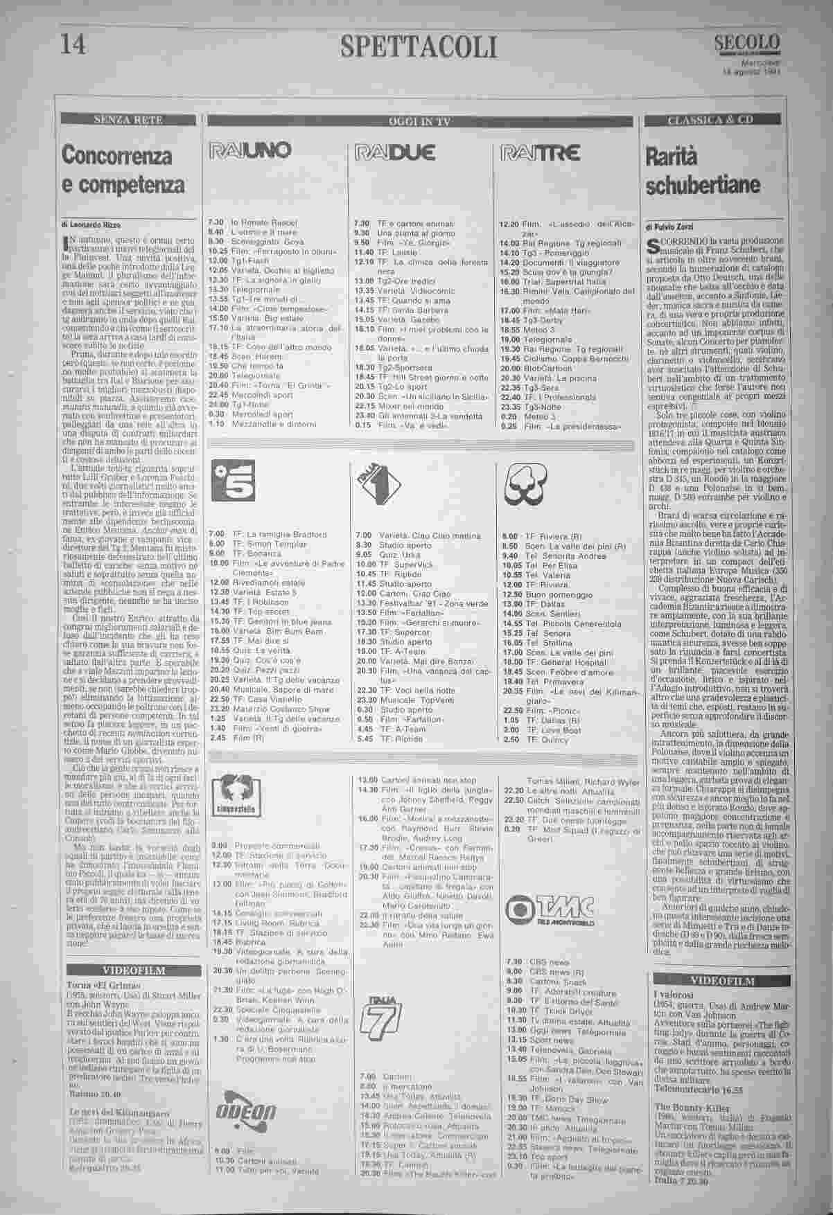 mercoledì 14 agosto 1991