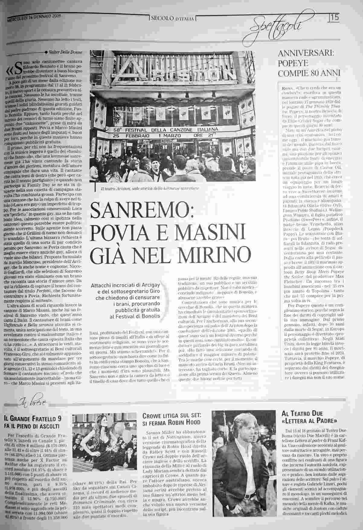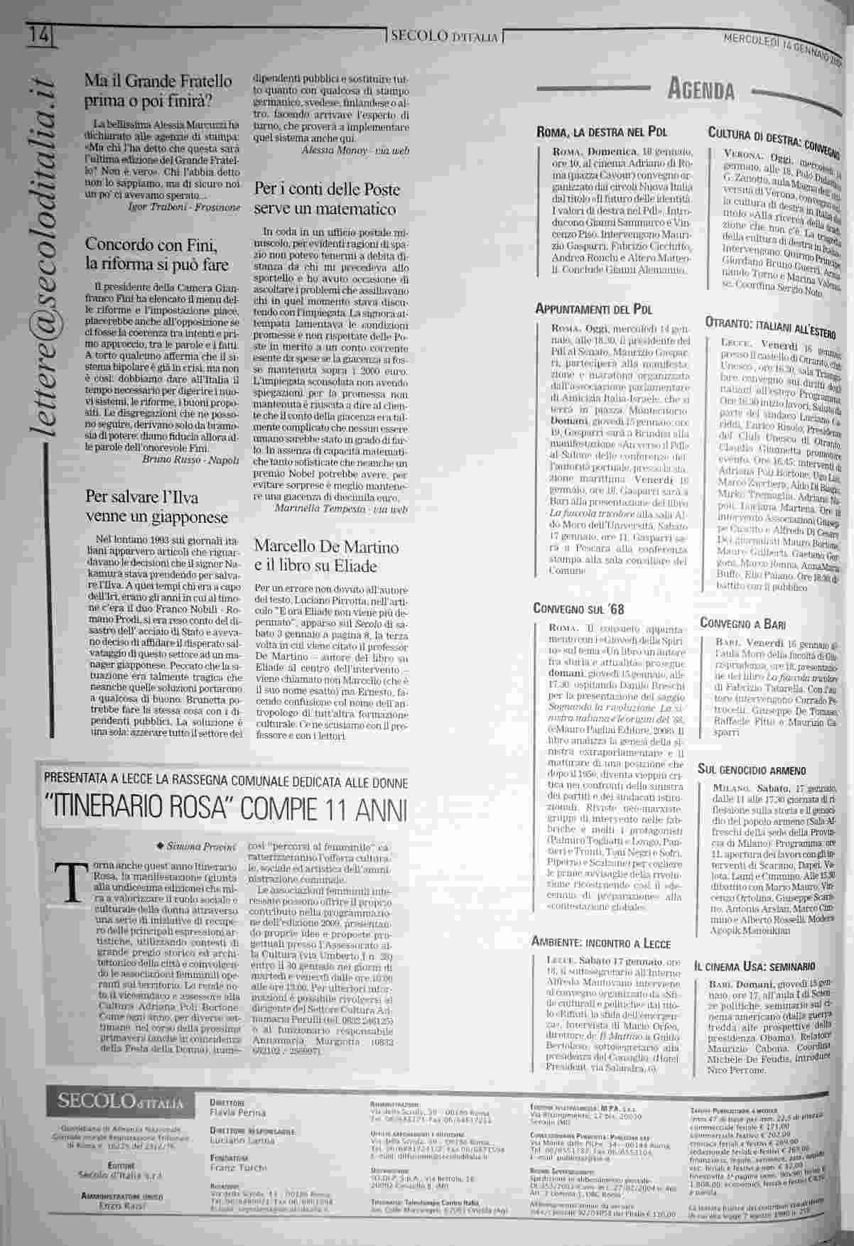 mercoledì 14 gennaio 2009