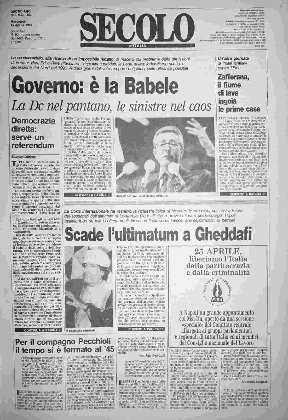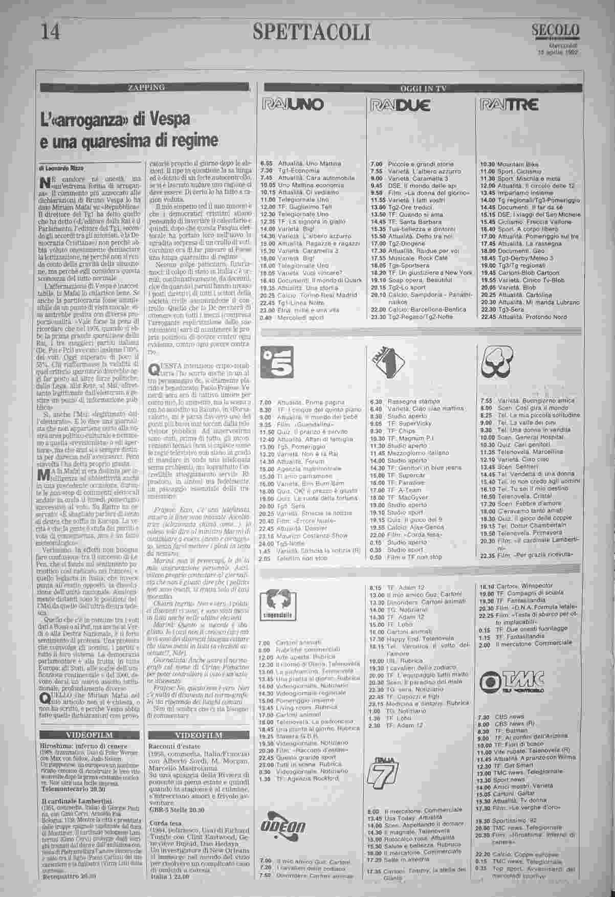 mercoledì 15 aprile 1992