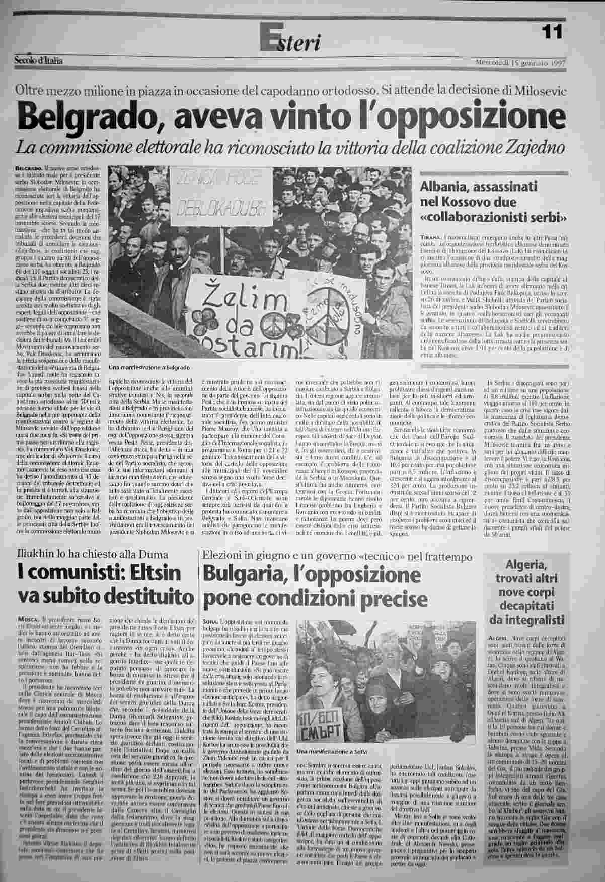 mercoledì 15 gennaio 1997