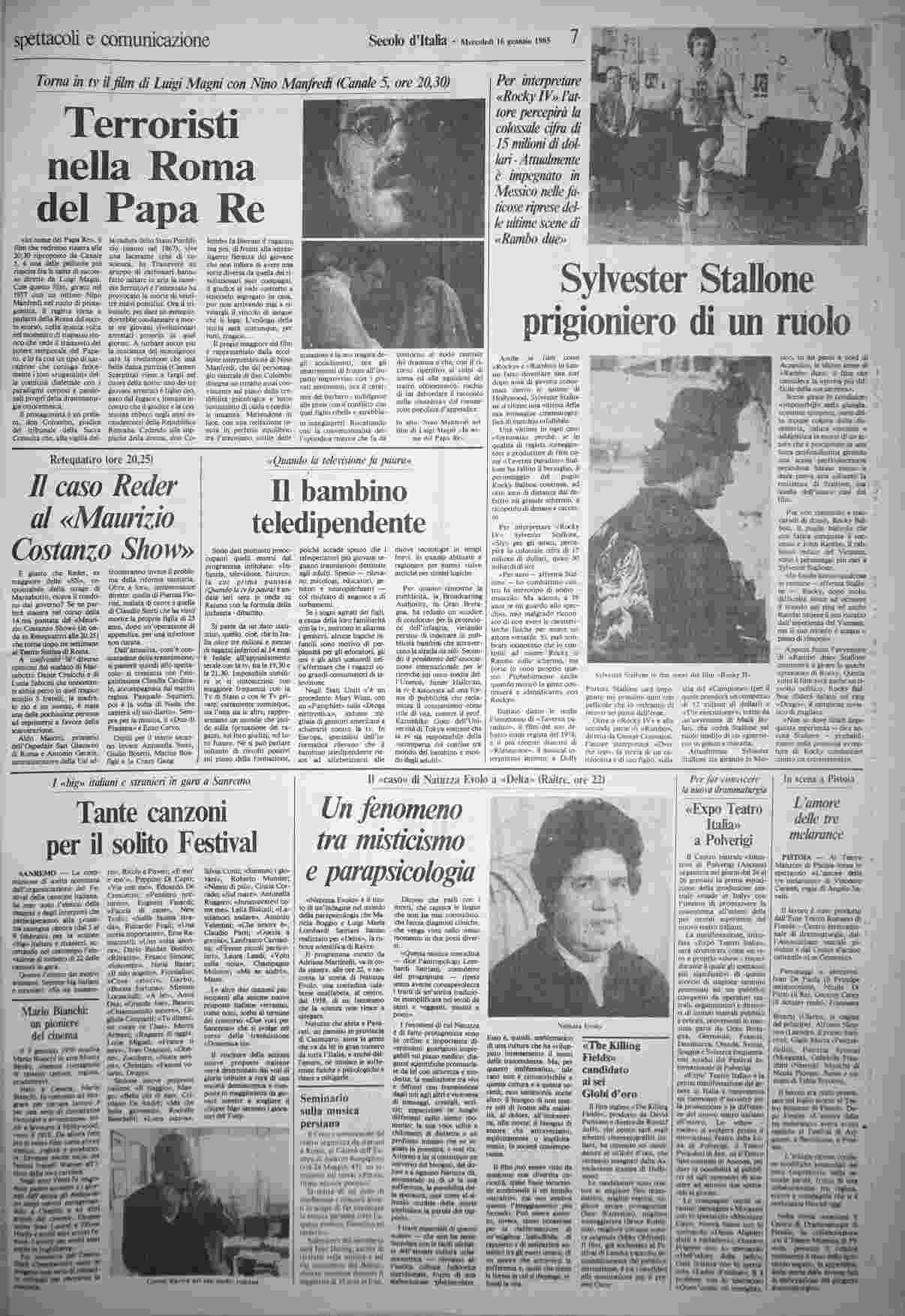 mercoledì 16 gennaio 1985