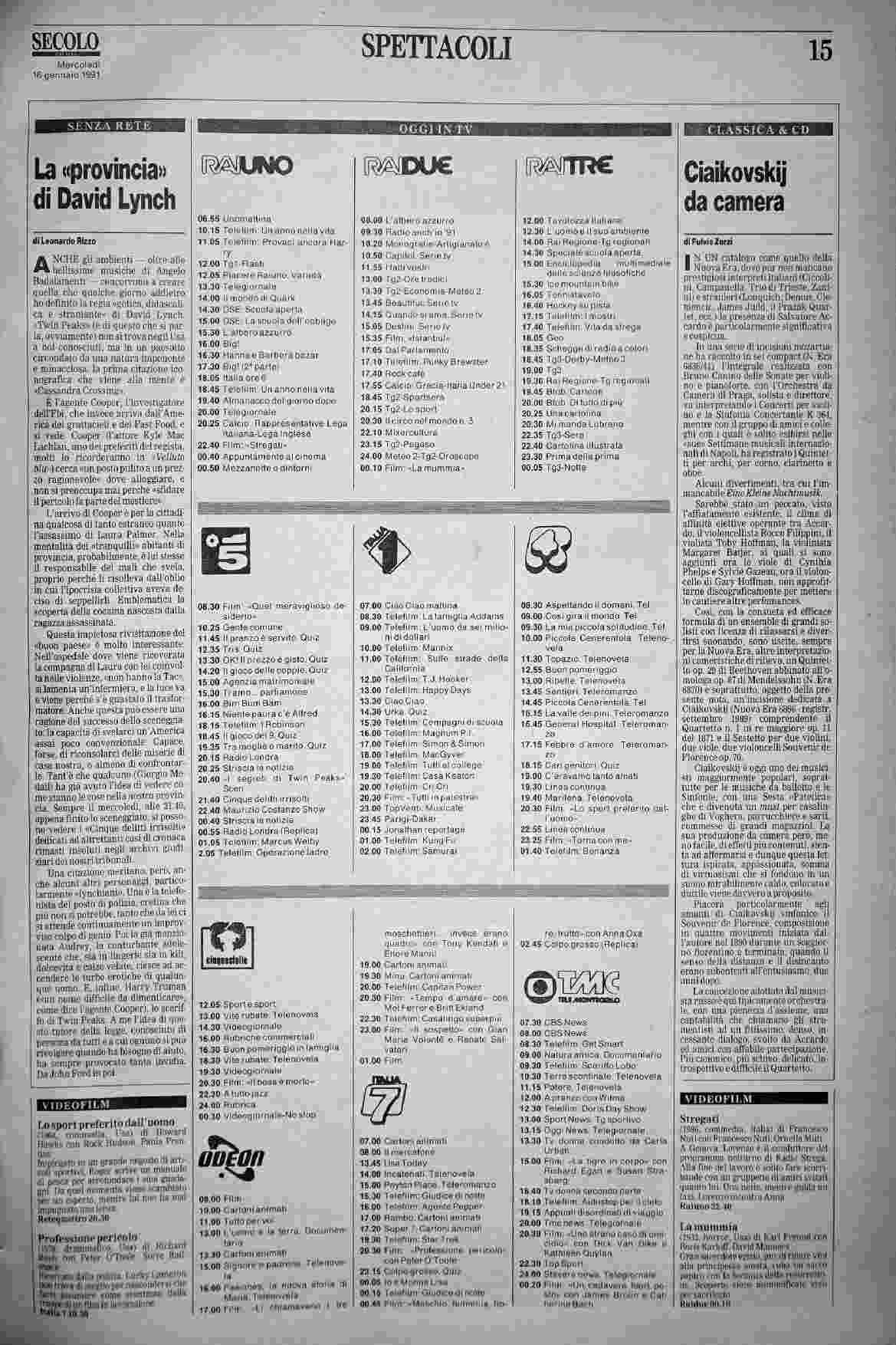 mercoledì 16 gennaio 1991