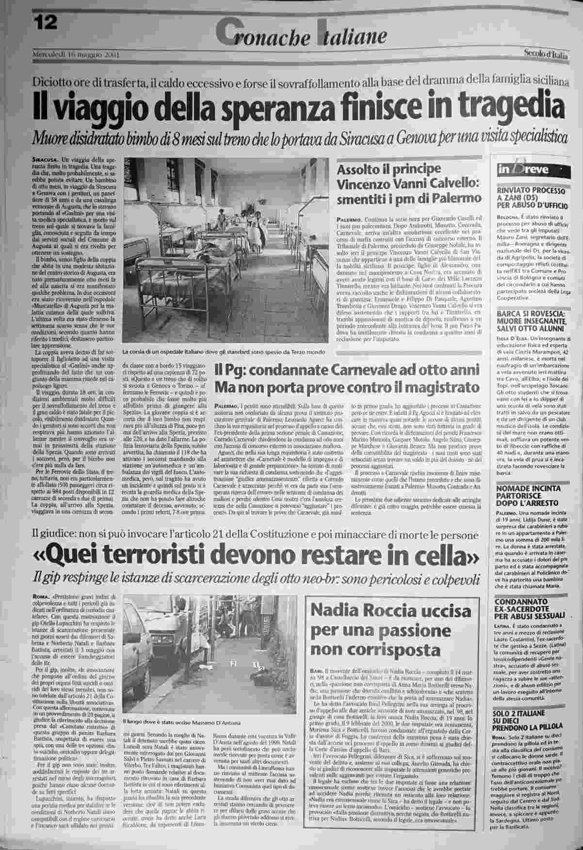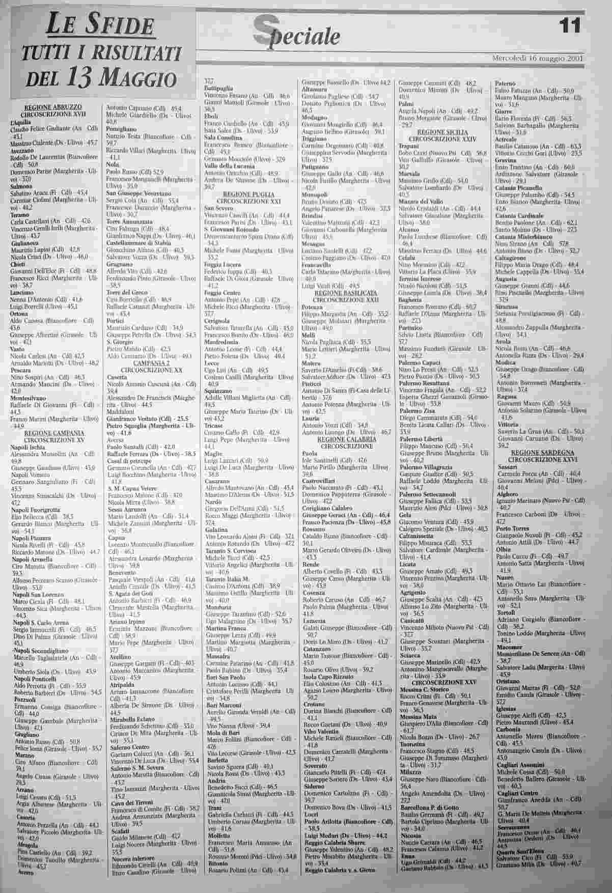 mercoledì 16 maggio 2001