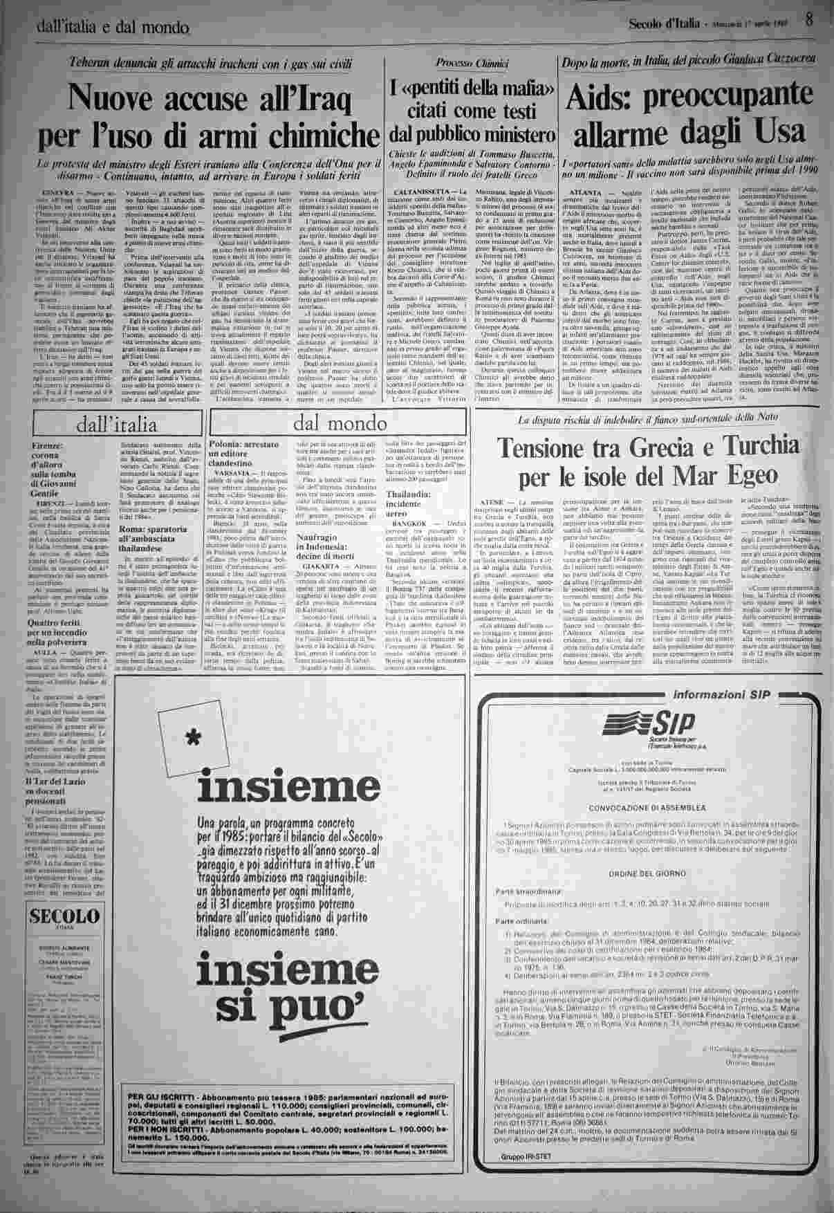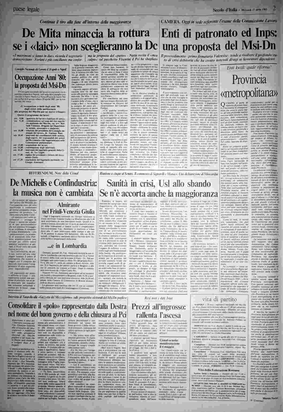 mercoledì 17 aprile 1985