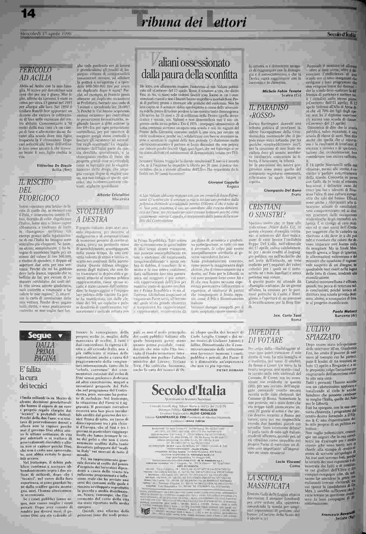 mercoledì 17 aprile 1996