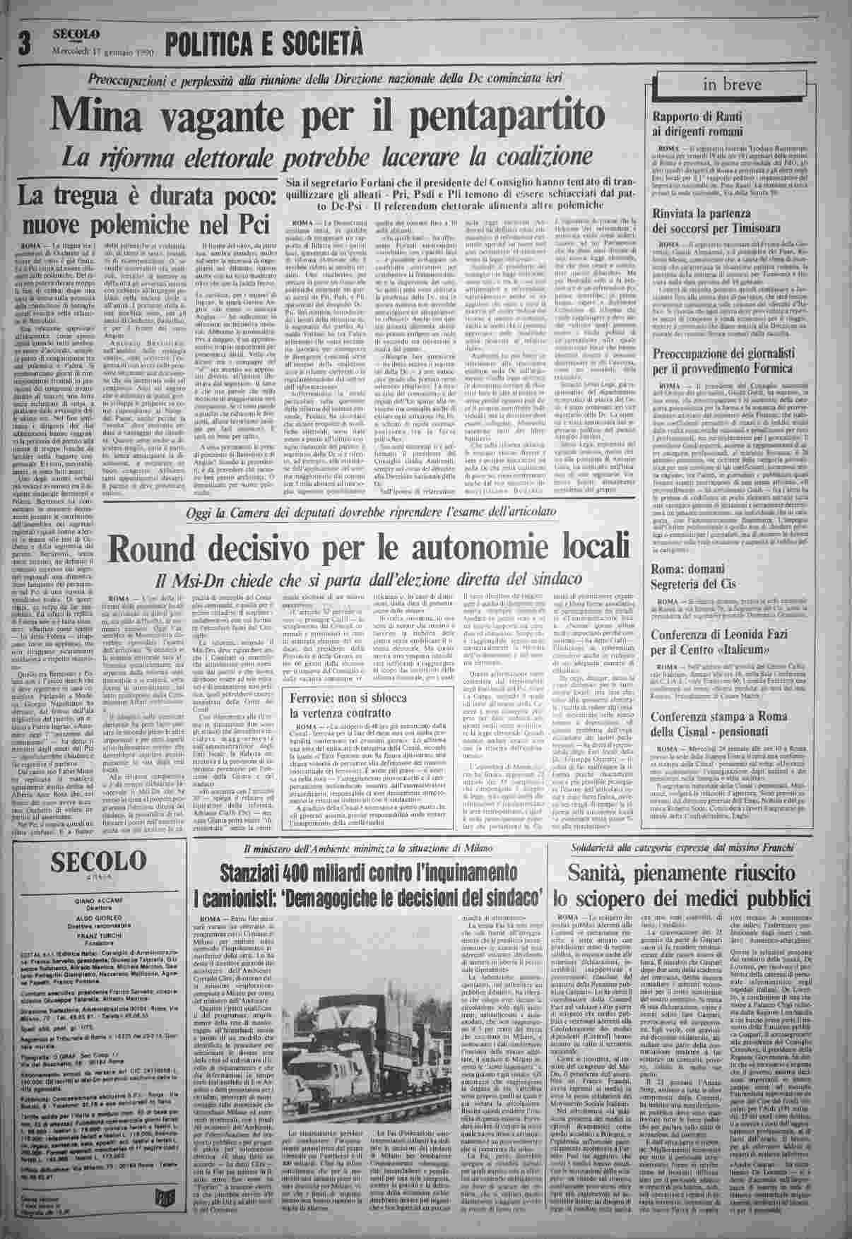 mercoledì 17 gennaio 1990