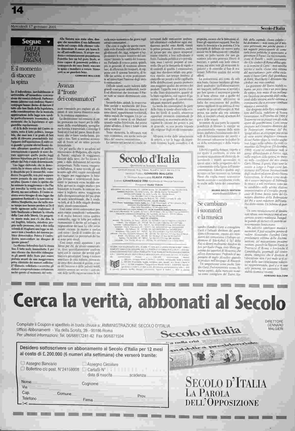 mercoledì 17 gennaio 2001