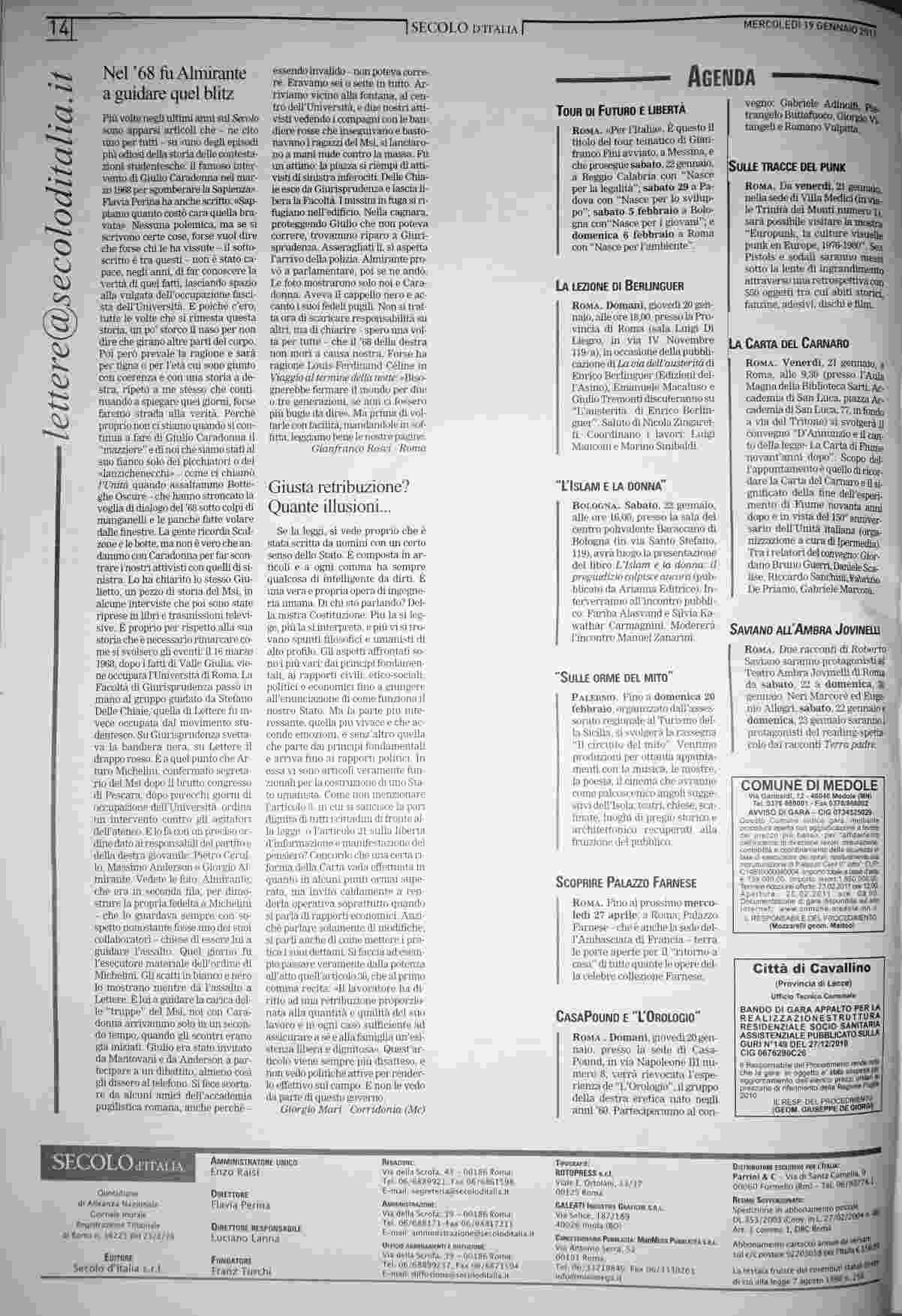 mercoledì 19 gennaio 2011