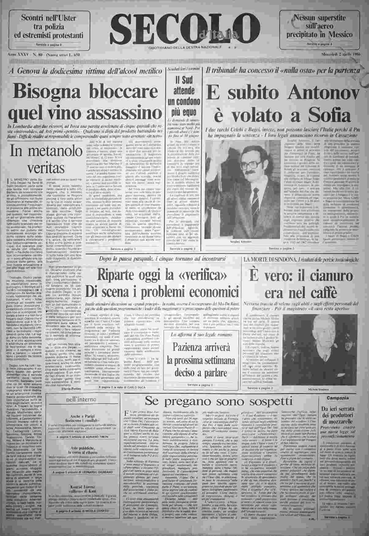 mercoledì 2 aprile 1986
