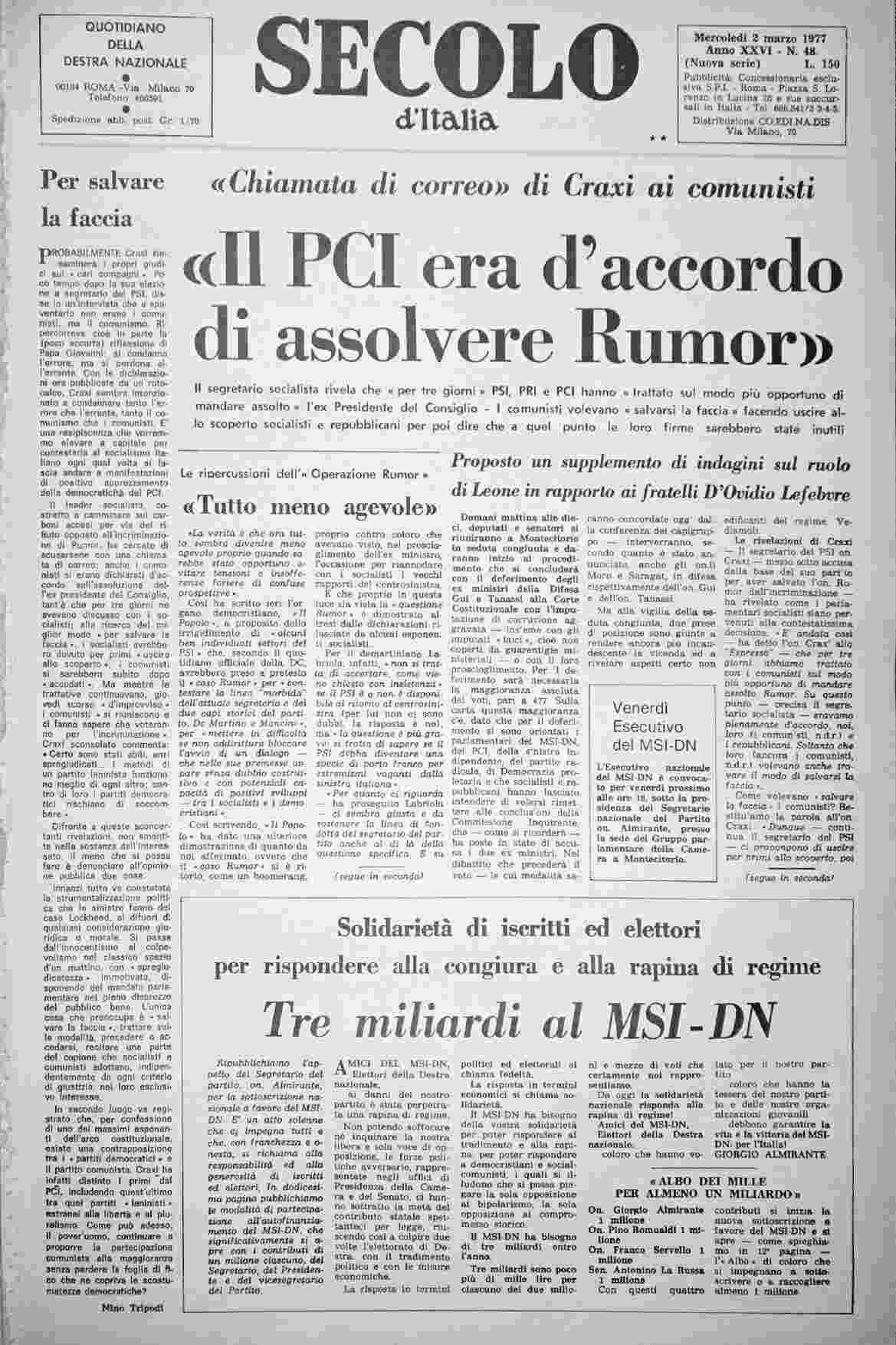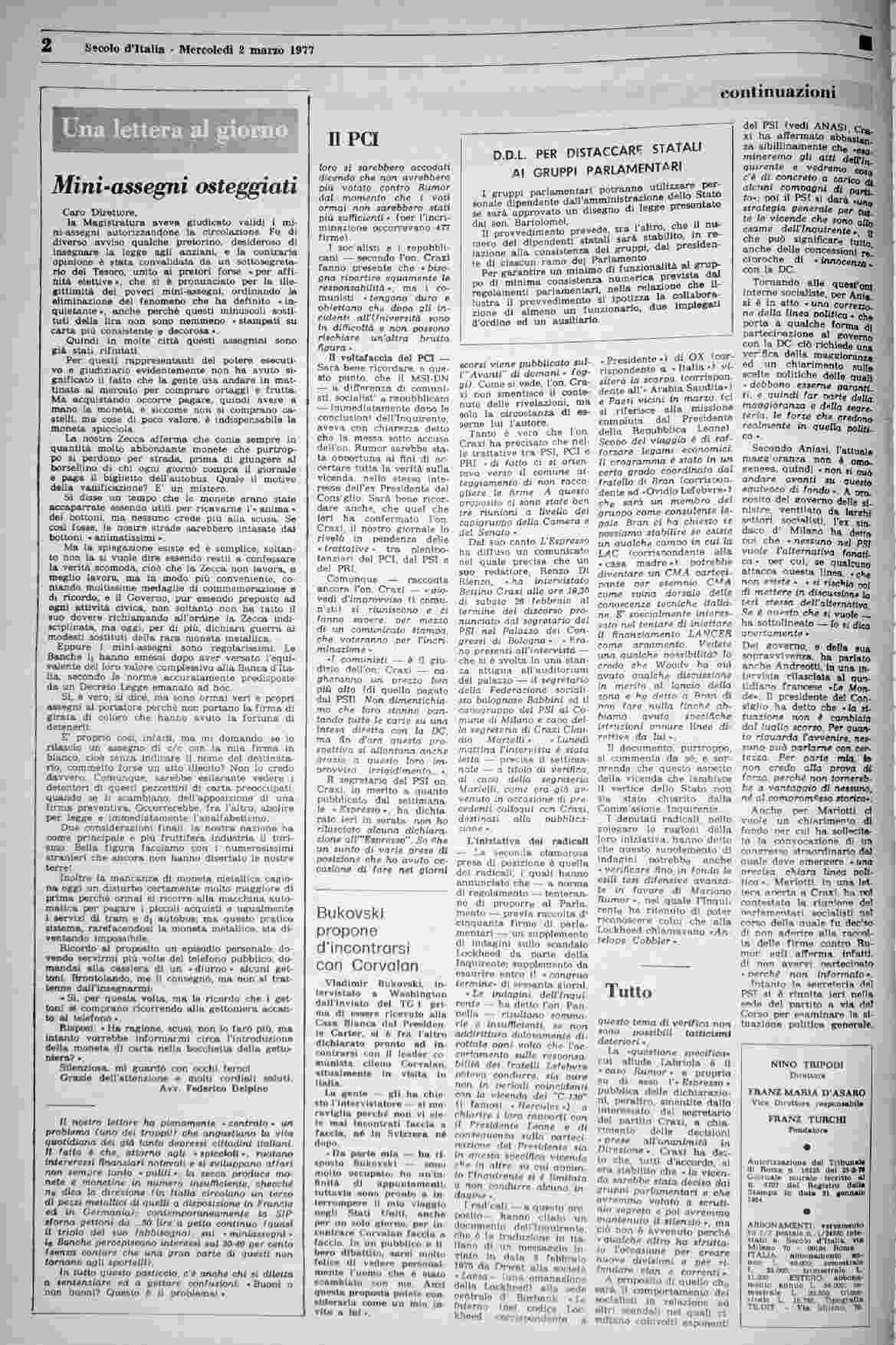 mercoledì 2 marzo 1977