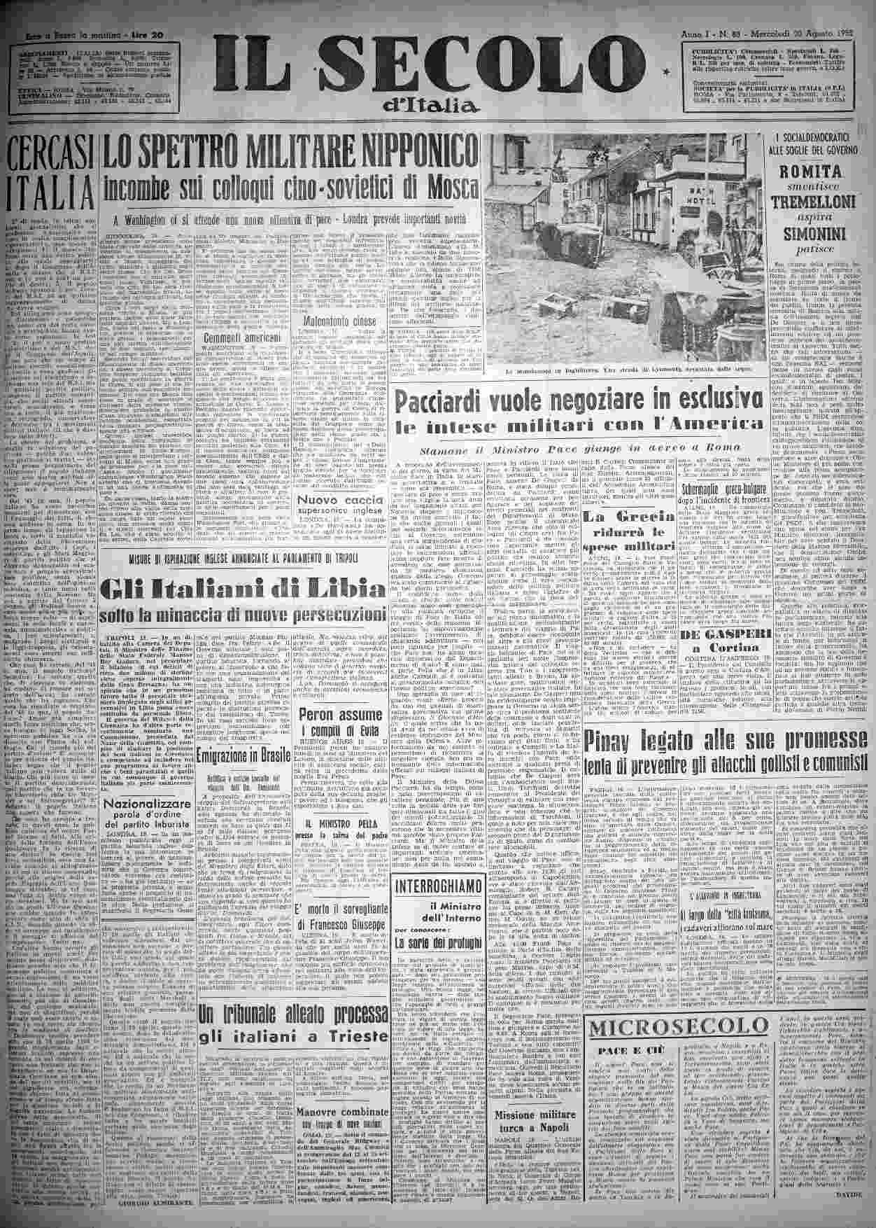 mercoledì 20 agosto 1952