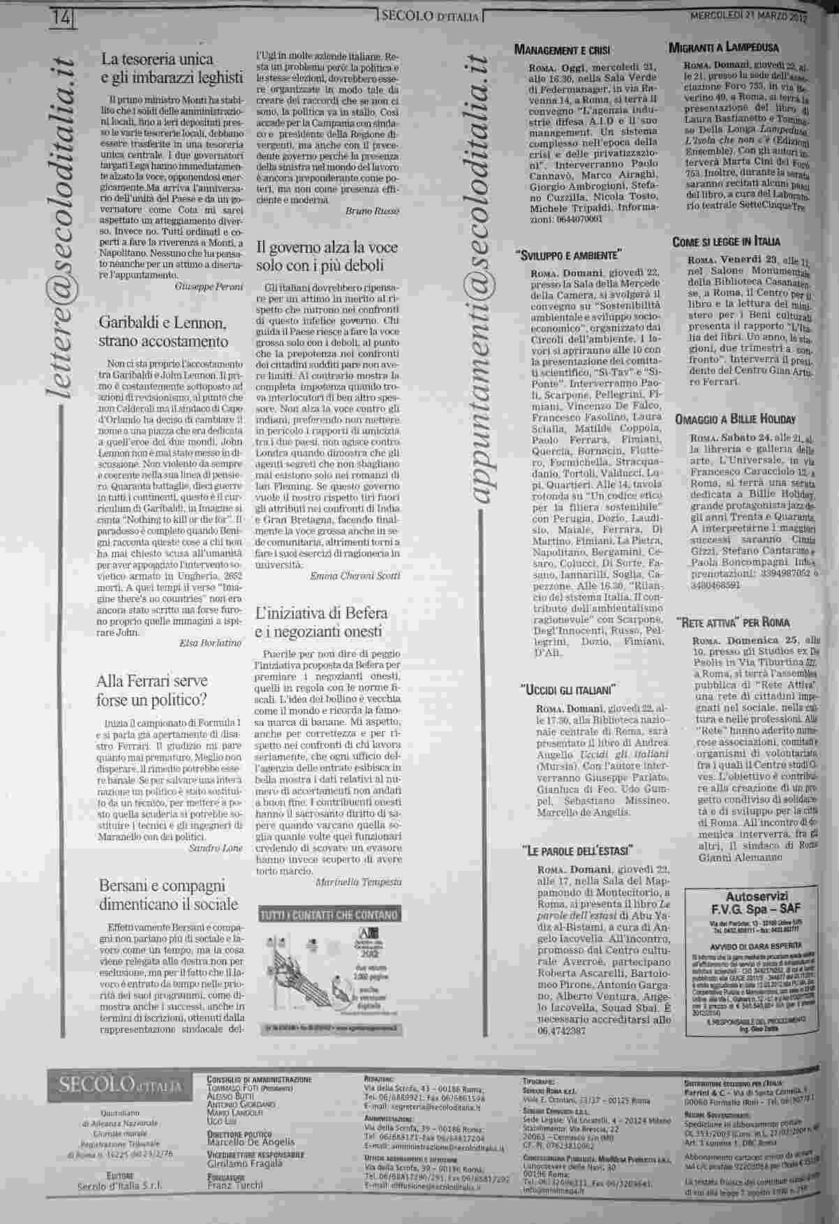 mercoledì 21 marzo 2012