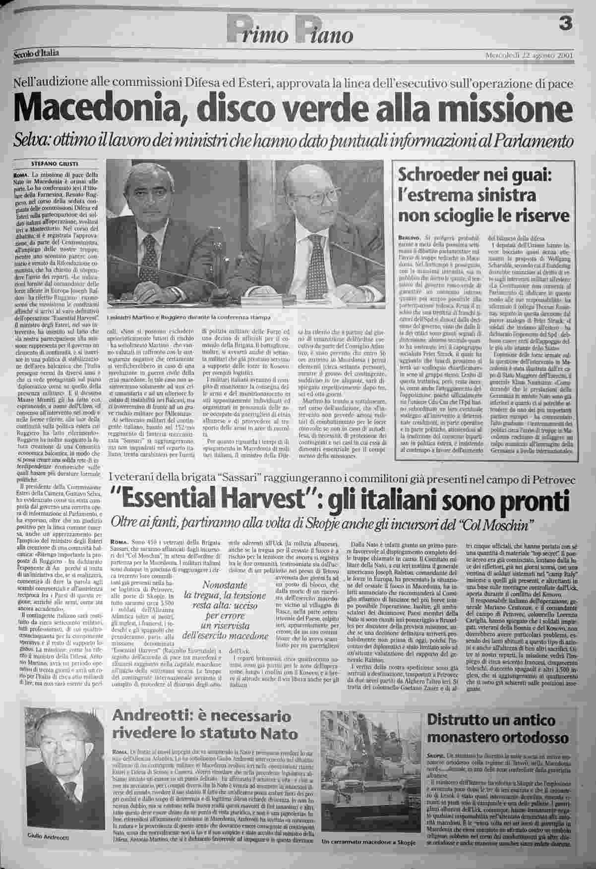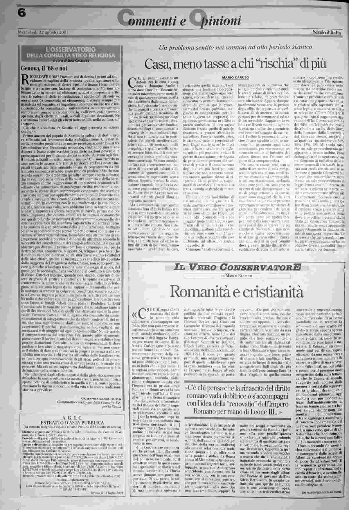 mercoledì 22 agosto 2001