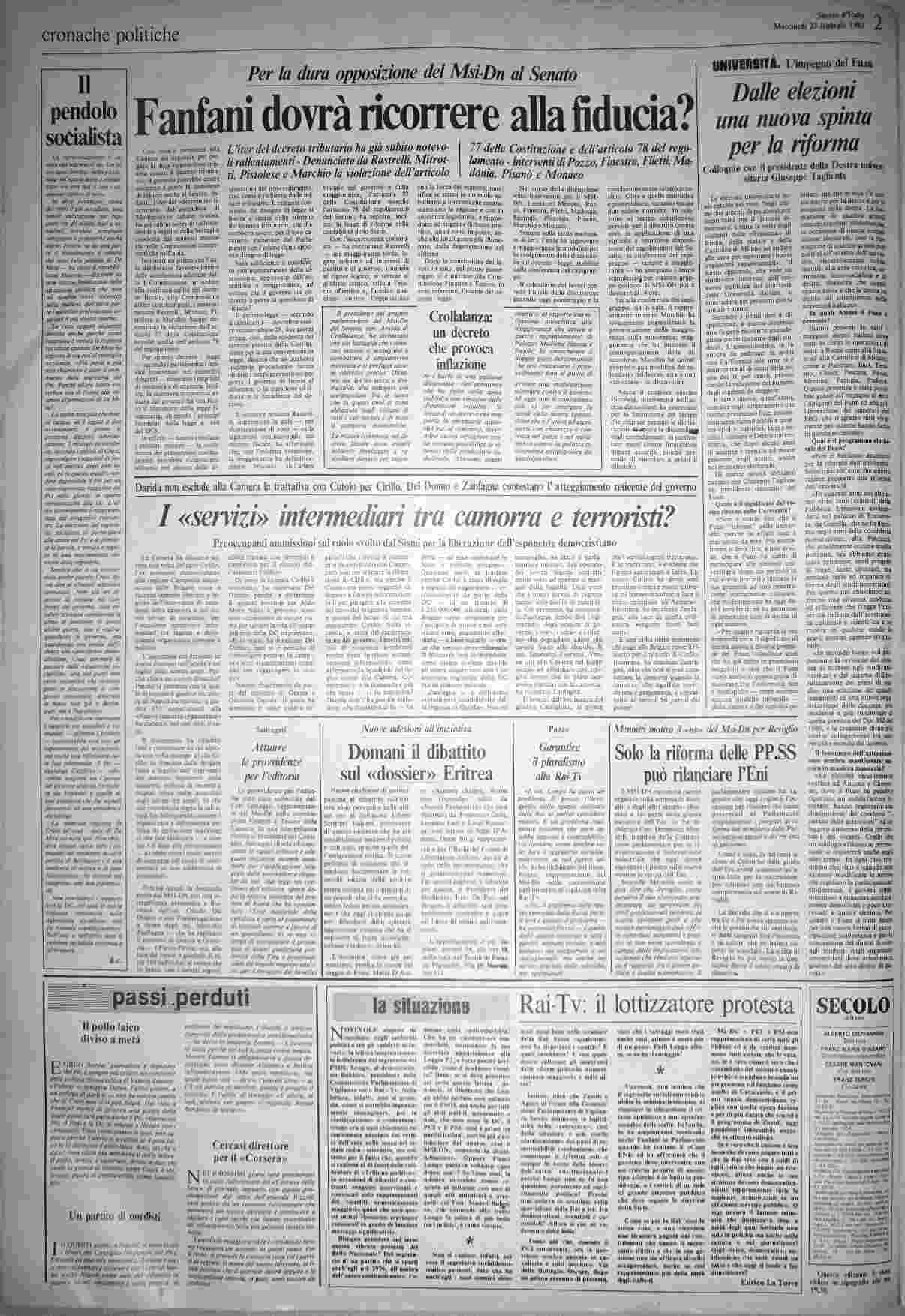 mercoledì 23 febbraio 1983