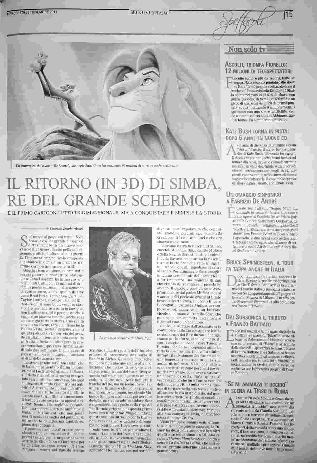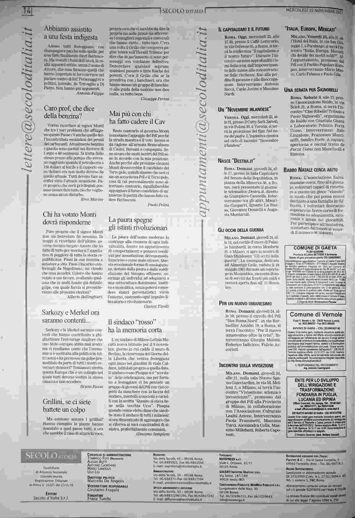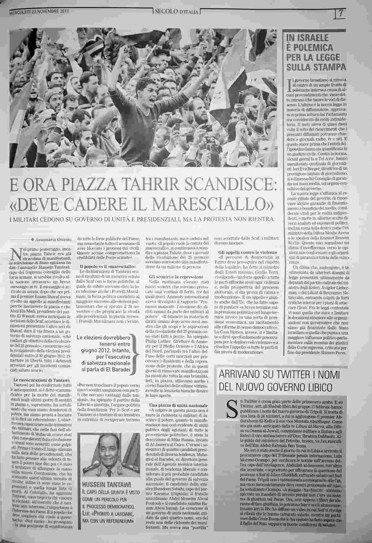 mercoledì 23 novembre 2011