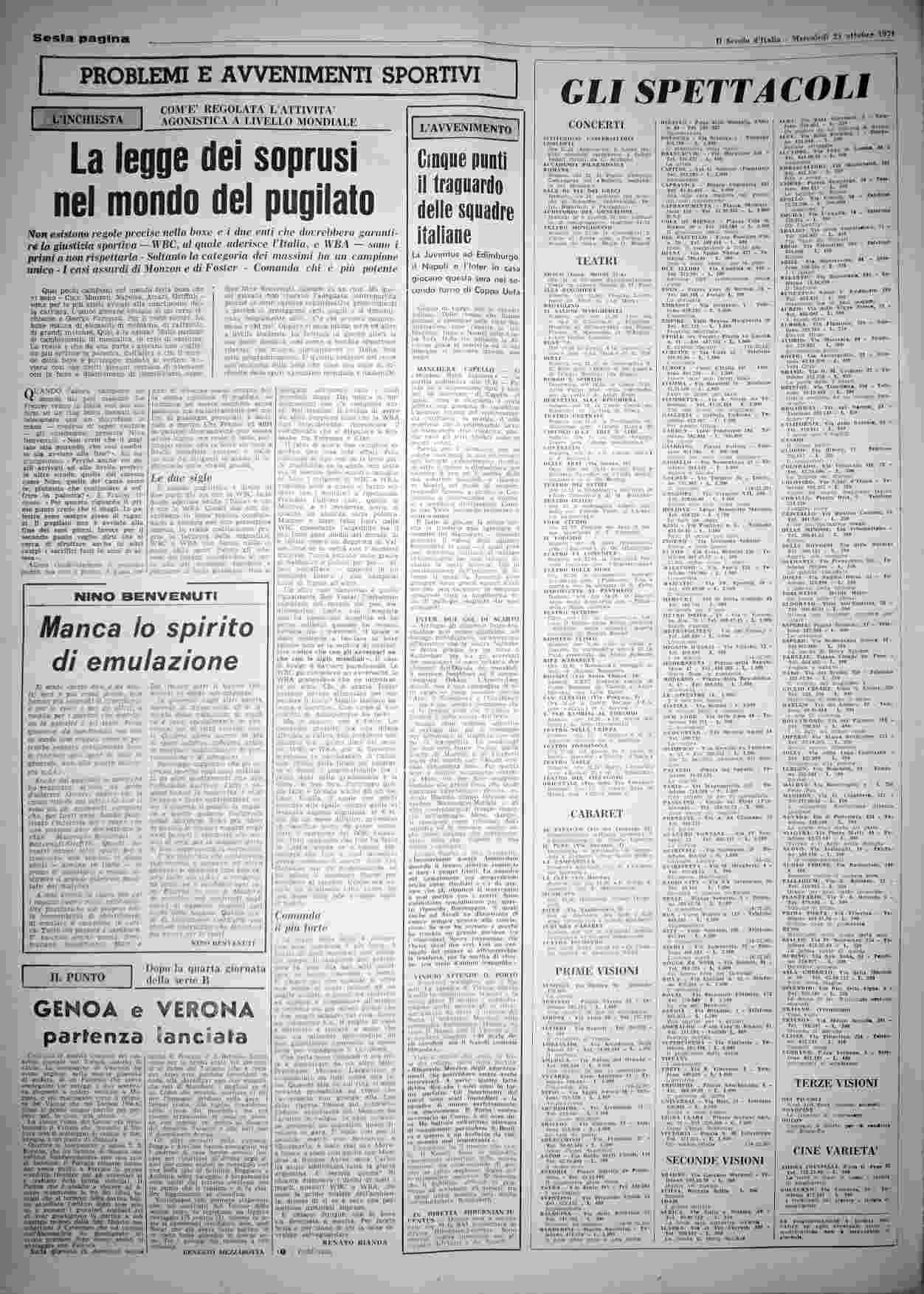 mercoledì 23 ottobre 1974