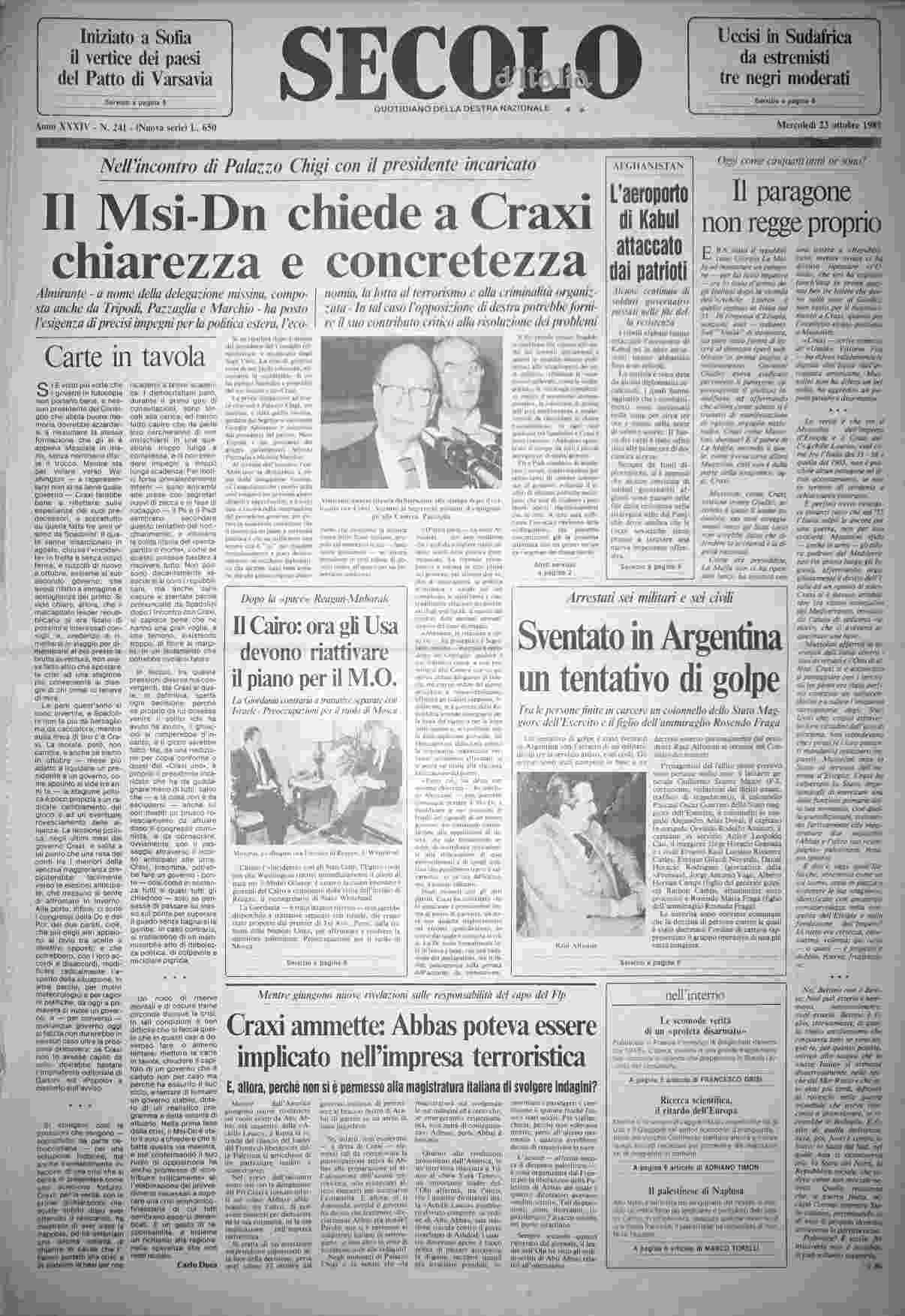 mercoledì 23 ottobre 1985