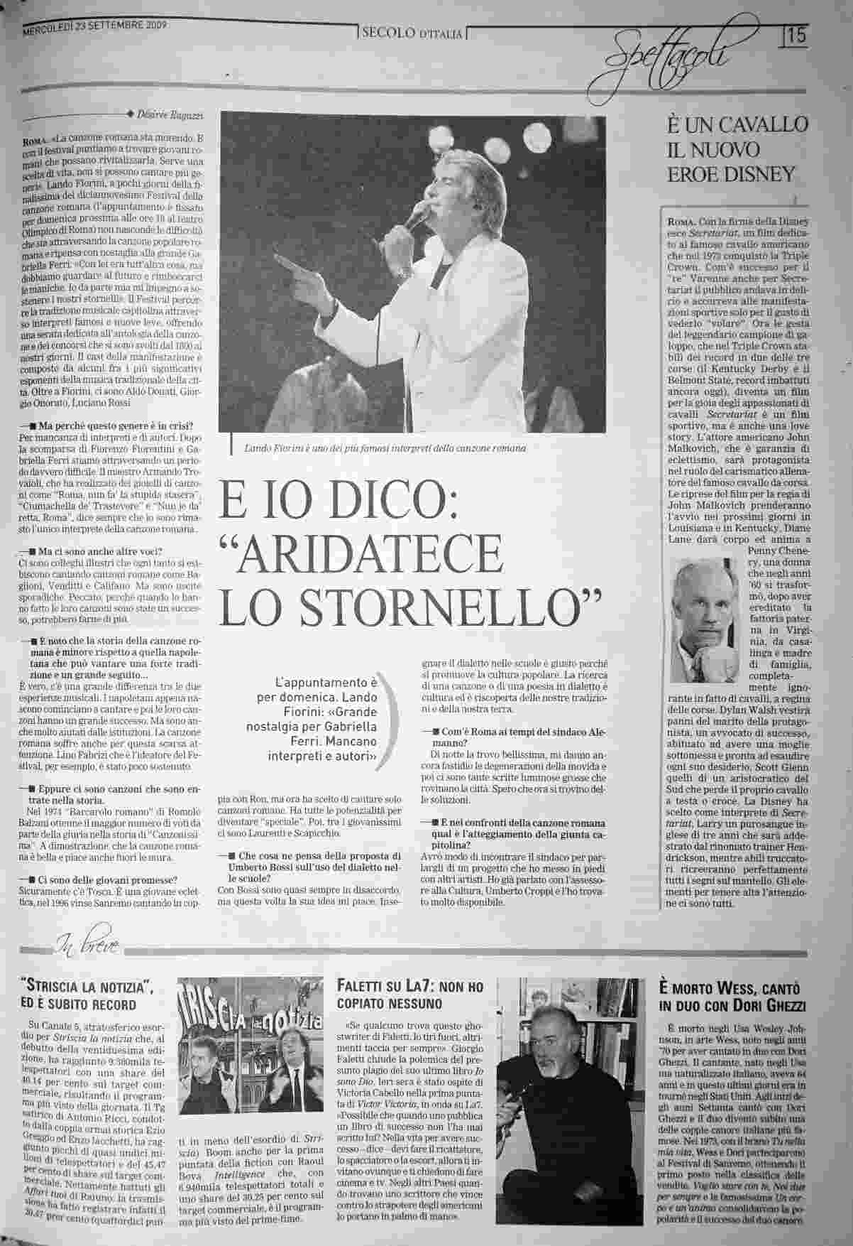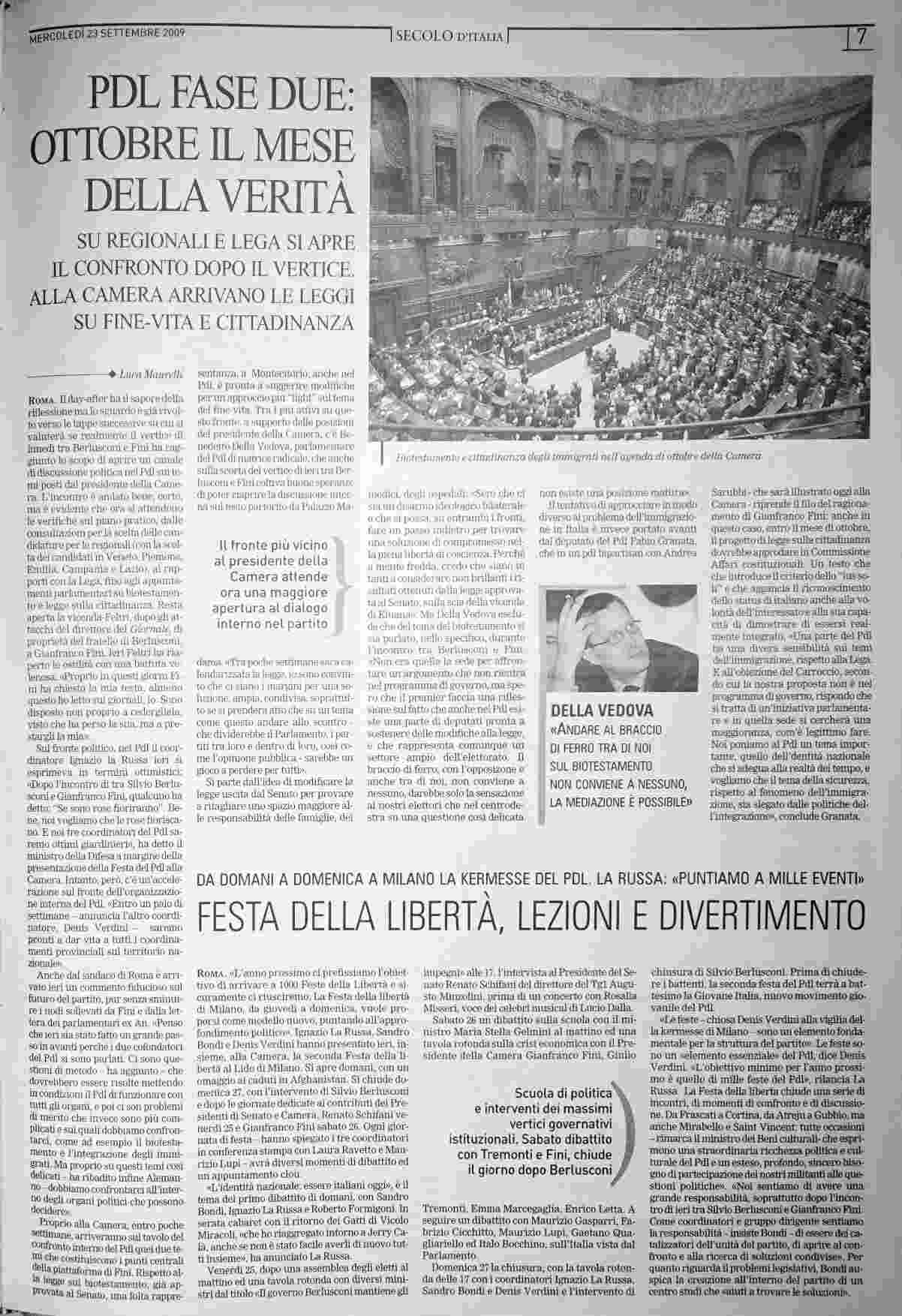 mercoledì 23 settembre 2009
