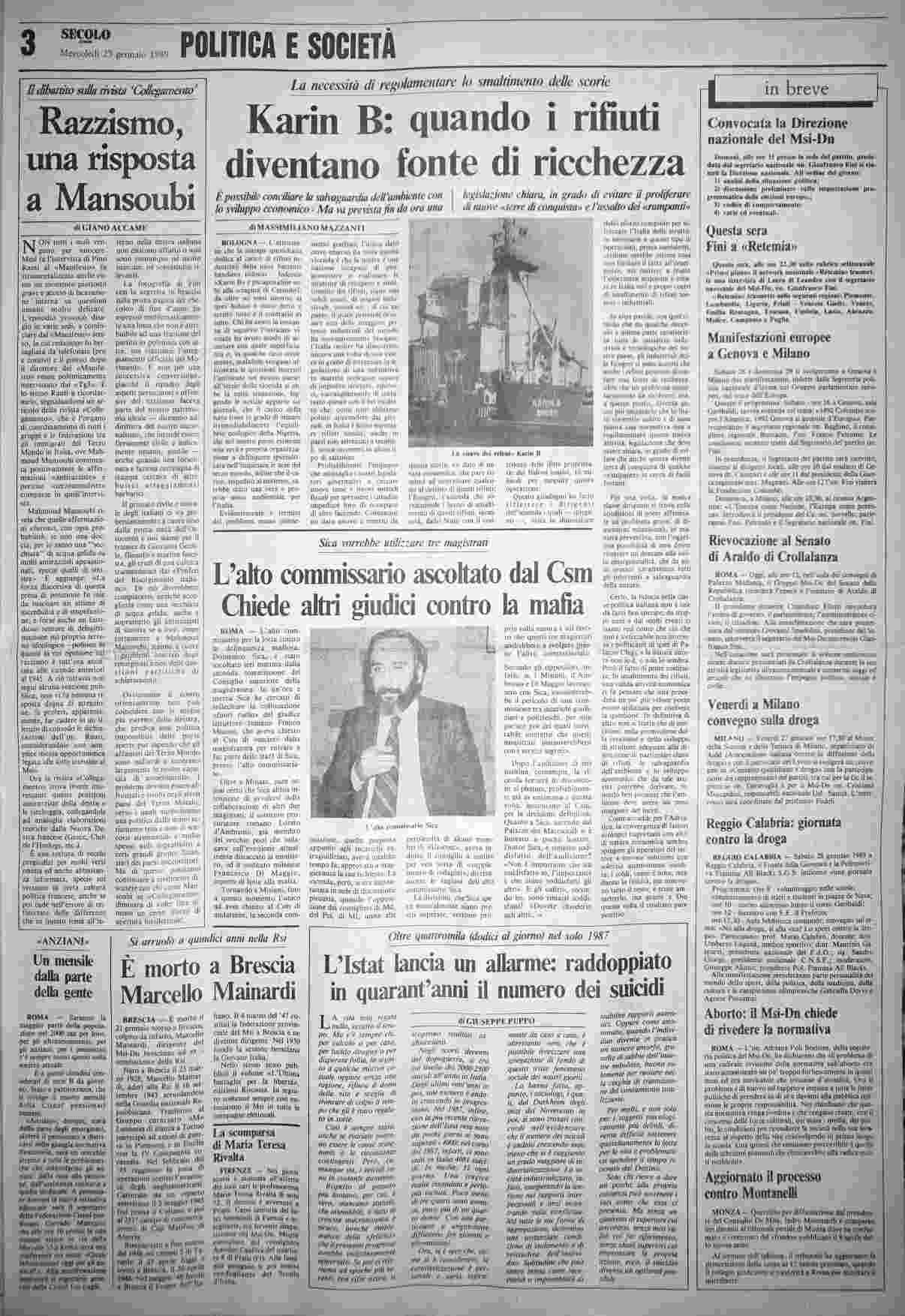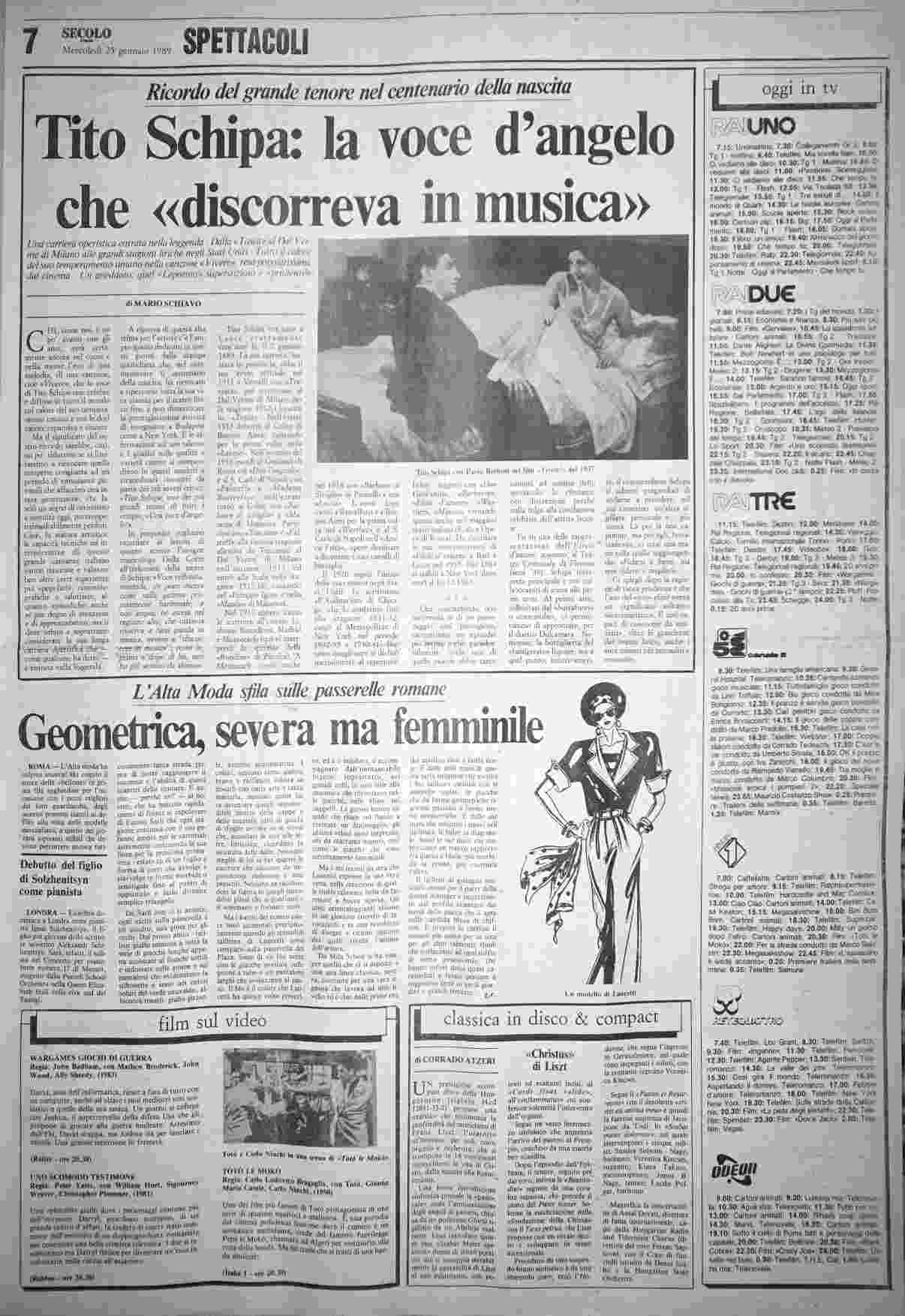 mercoledì 25 gennaio 1989