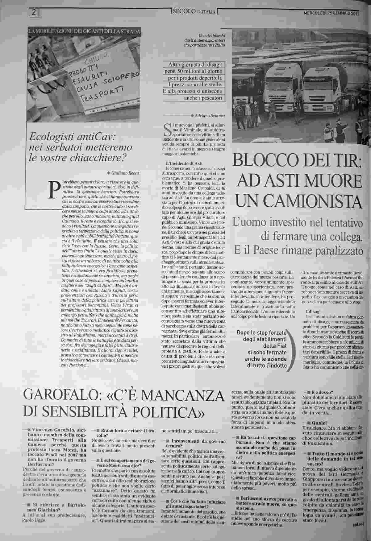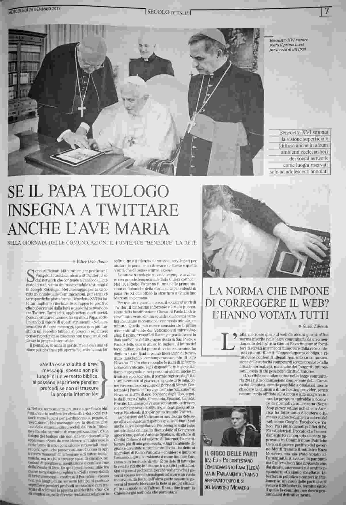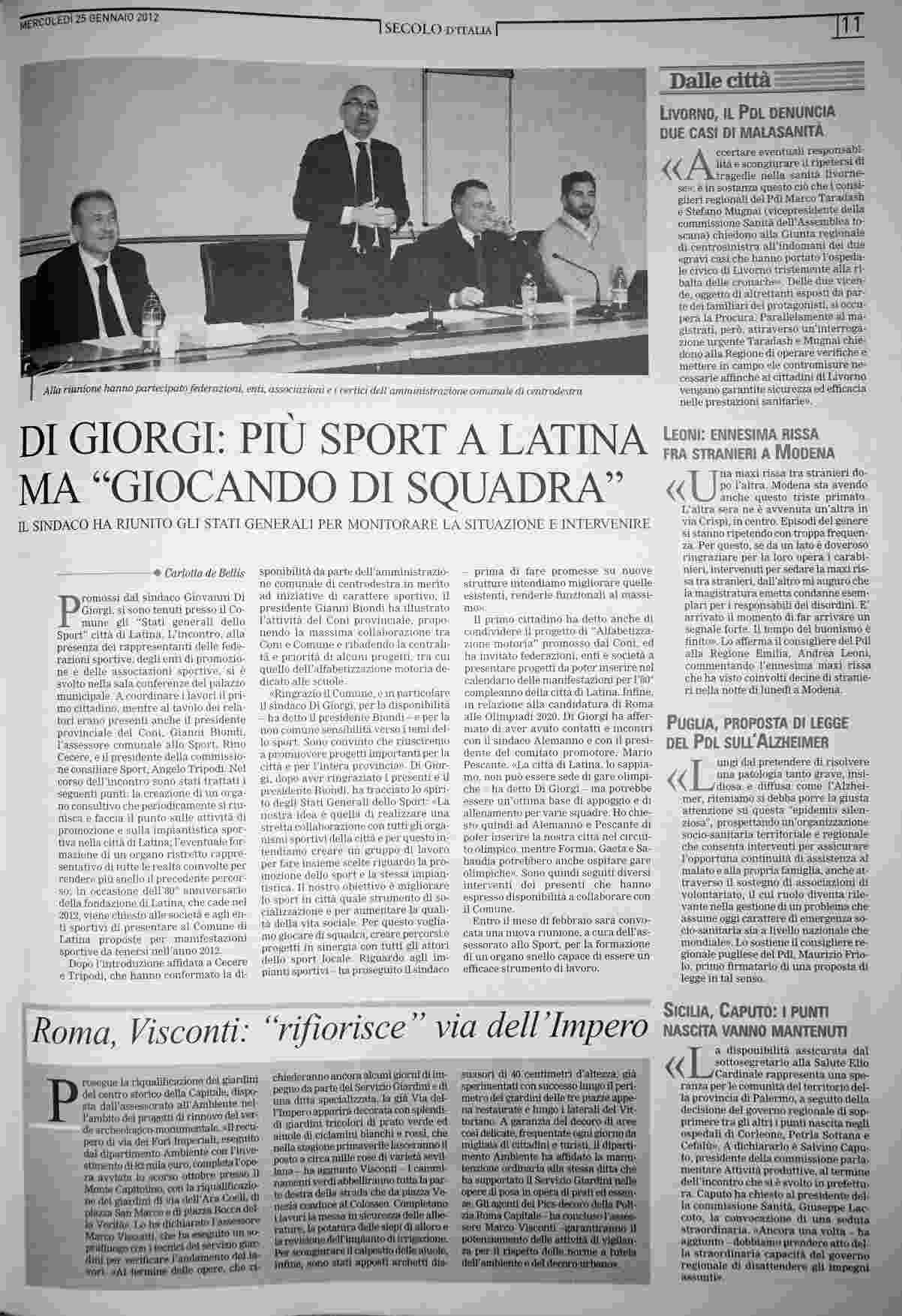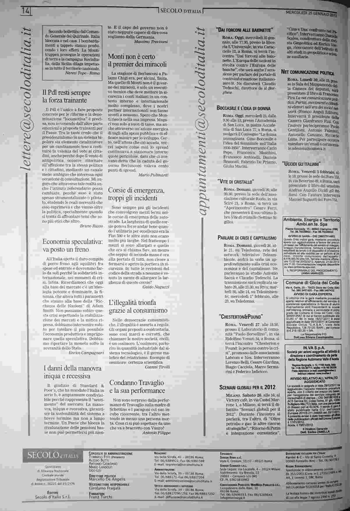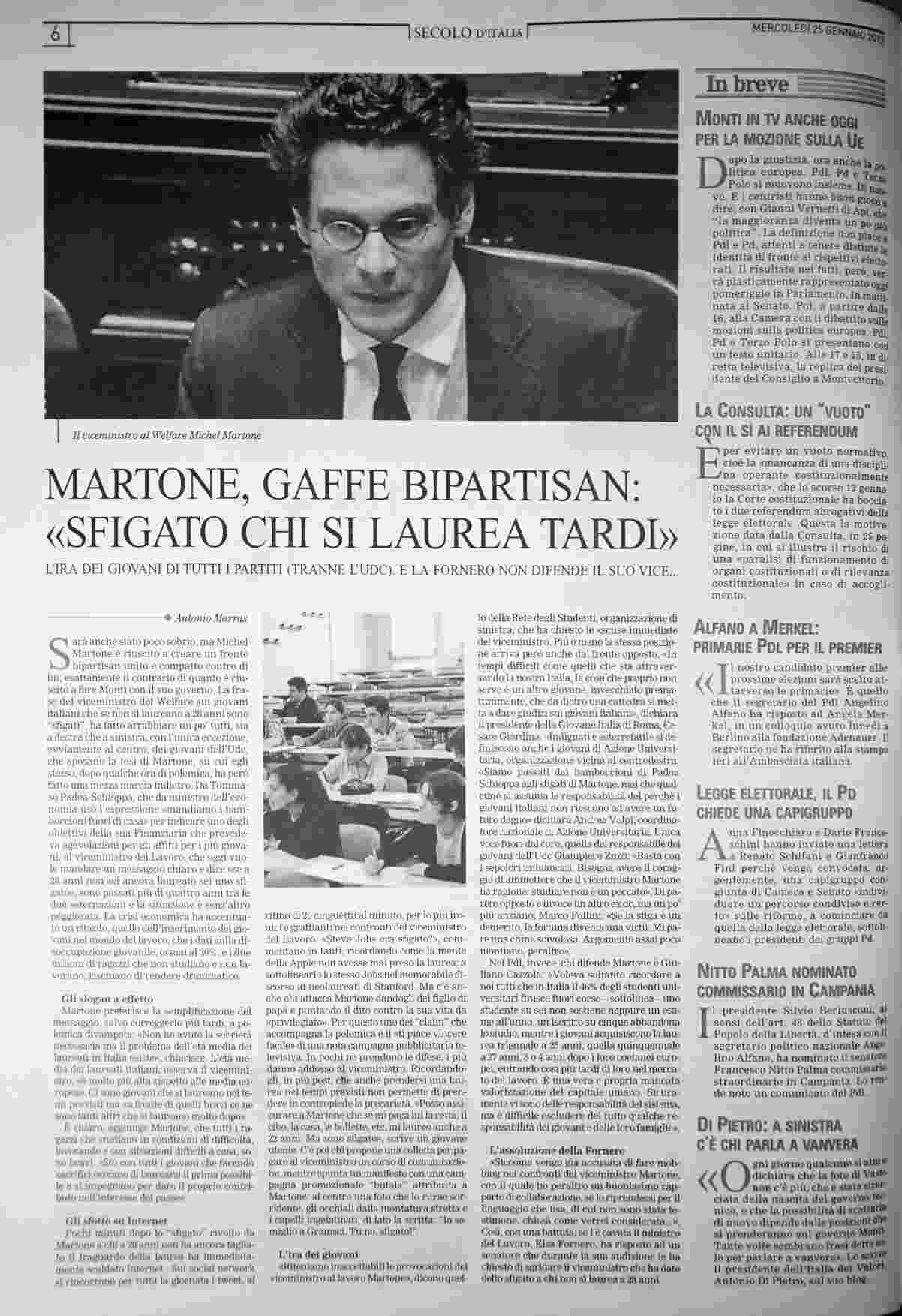 mercoledì 25 gennaio 2012