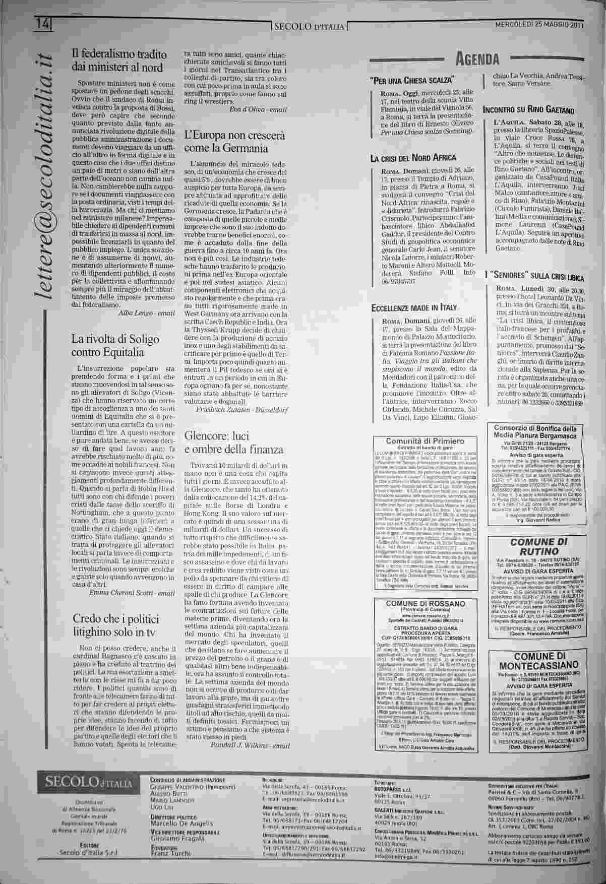 mercoledì 25 maggio 2011