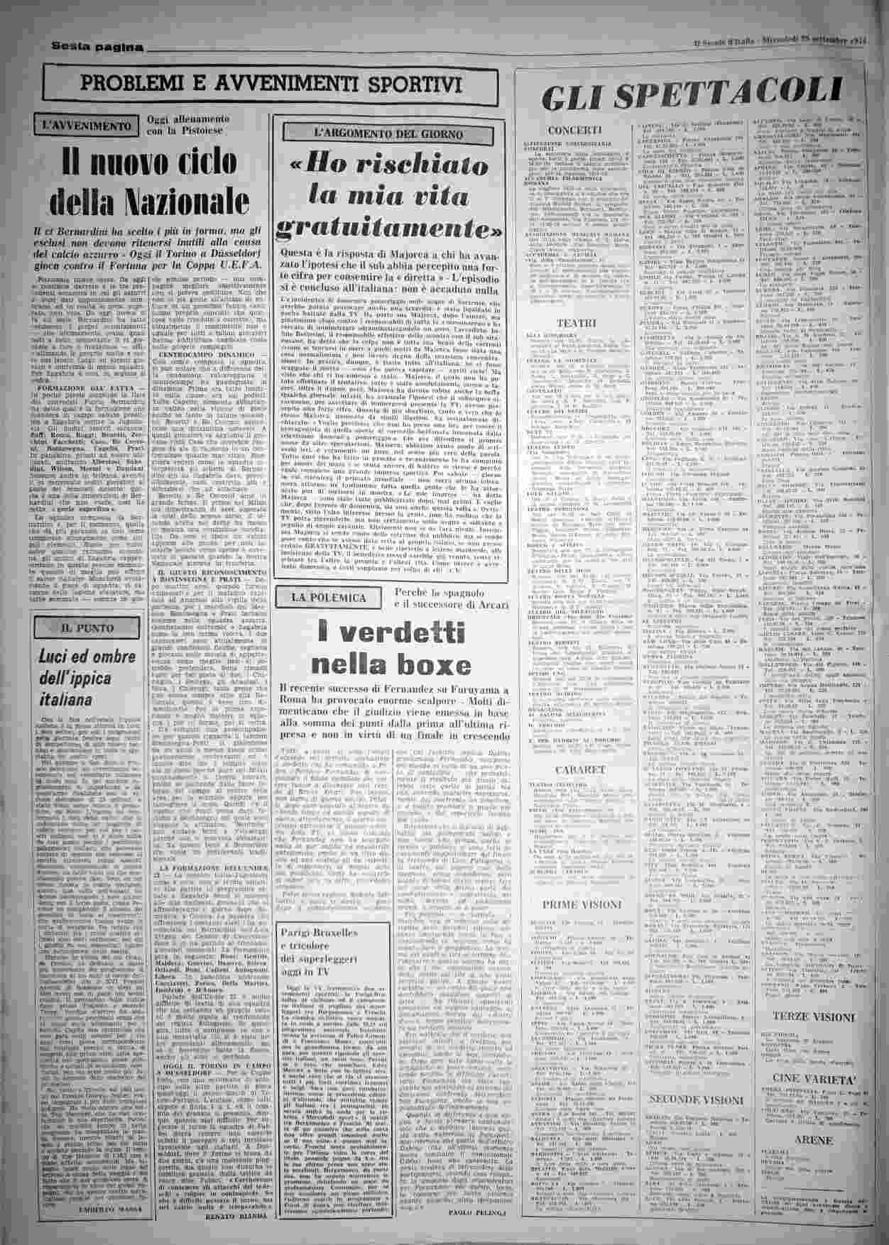mercoledì 25 settembre 1974