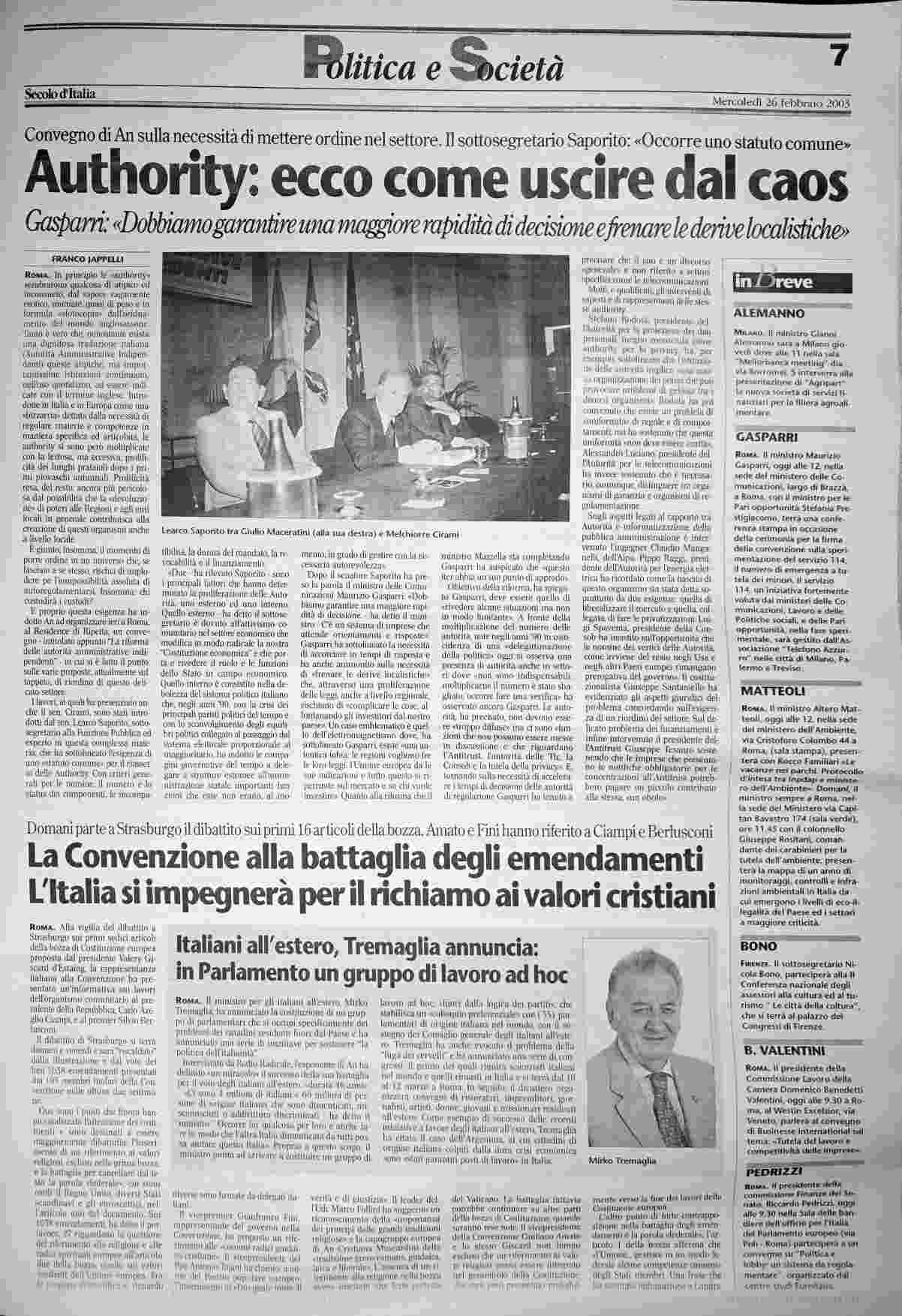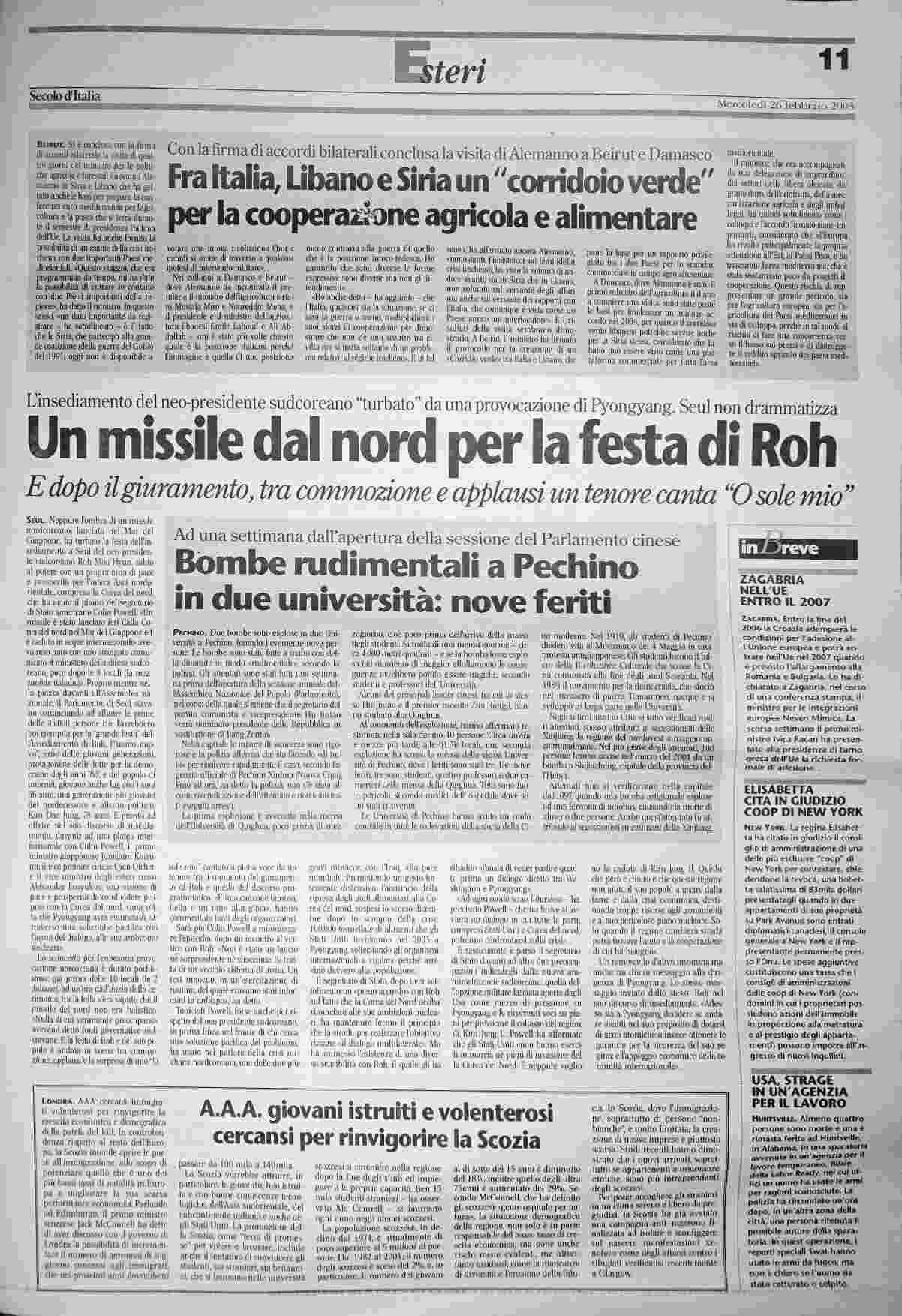 mercoledì 26 febbraio 2003