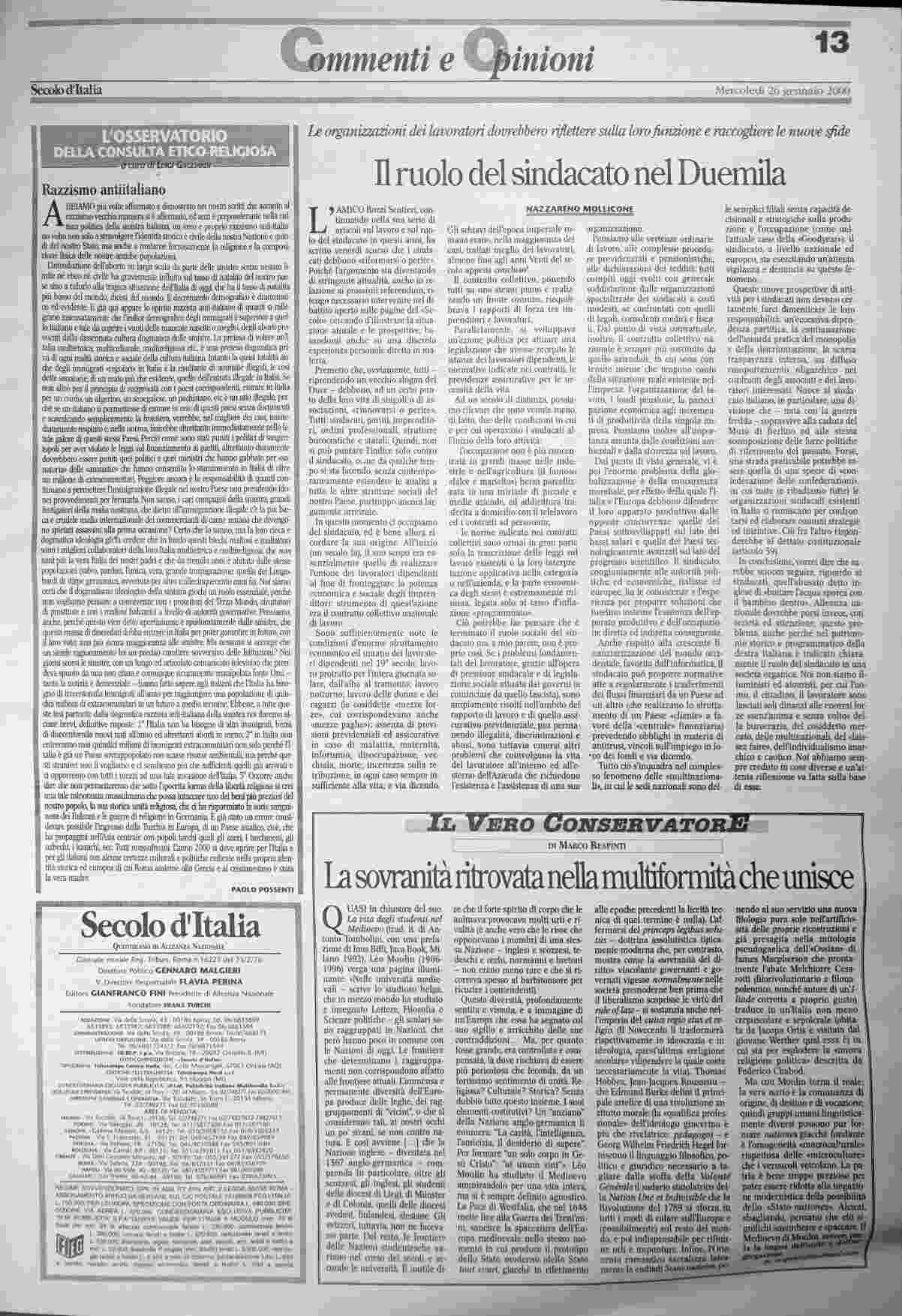 mercoledì 26 gennaio 2000