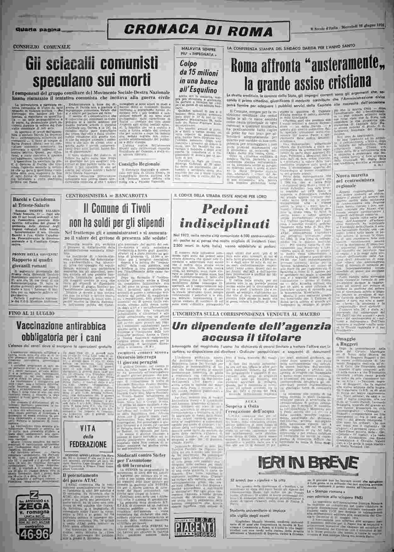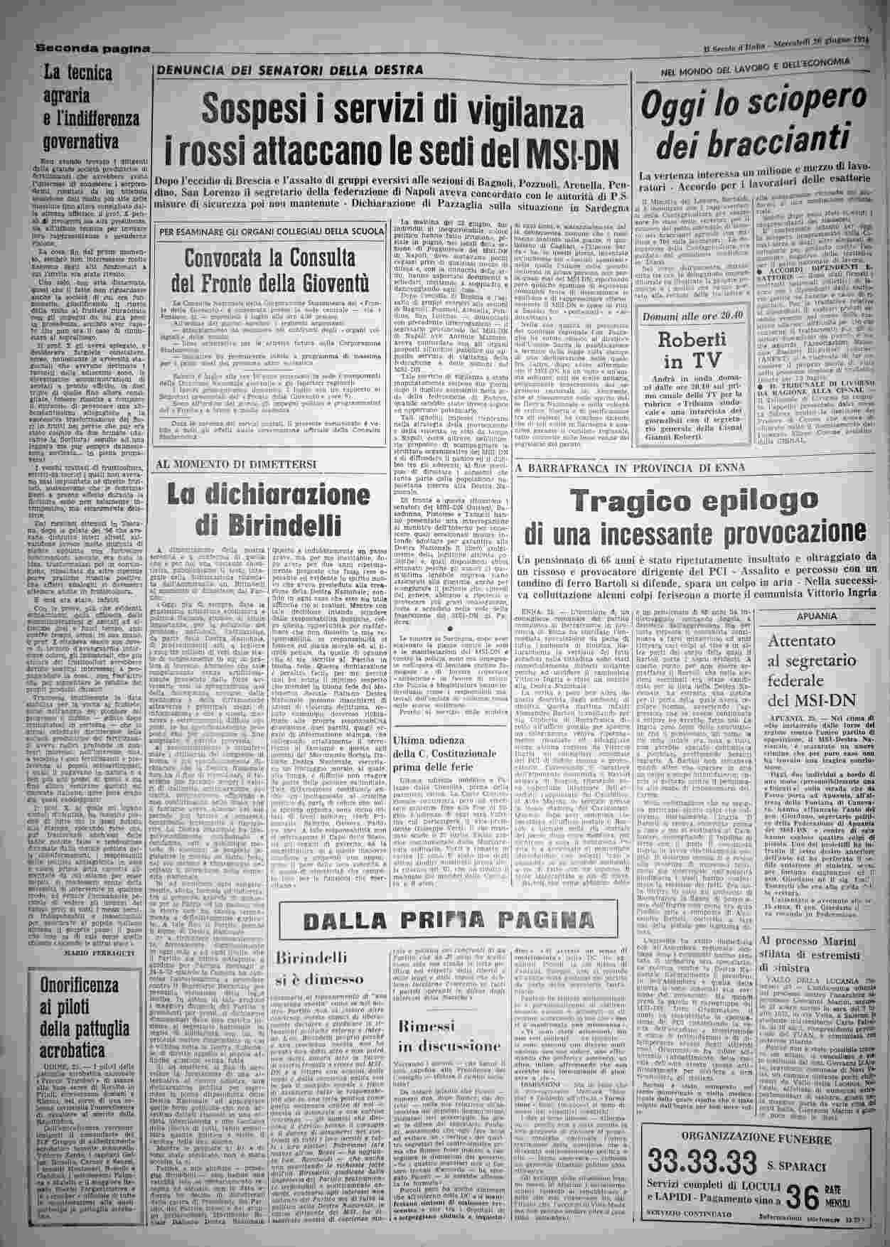 mercoledì 26 giugno 1974