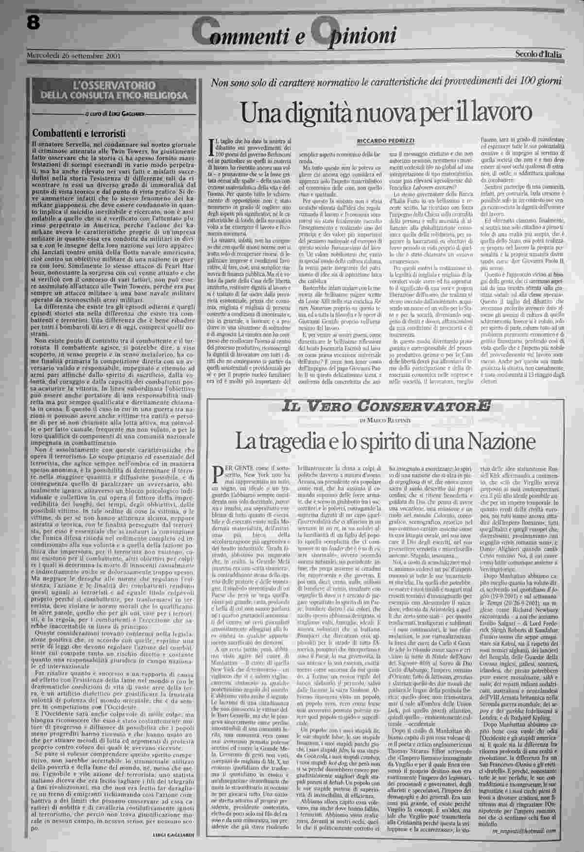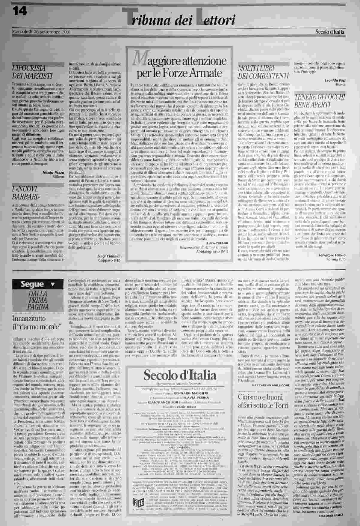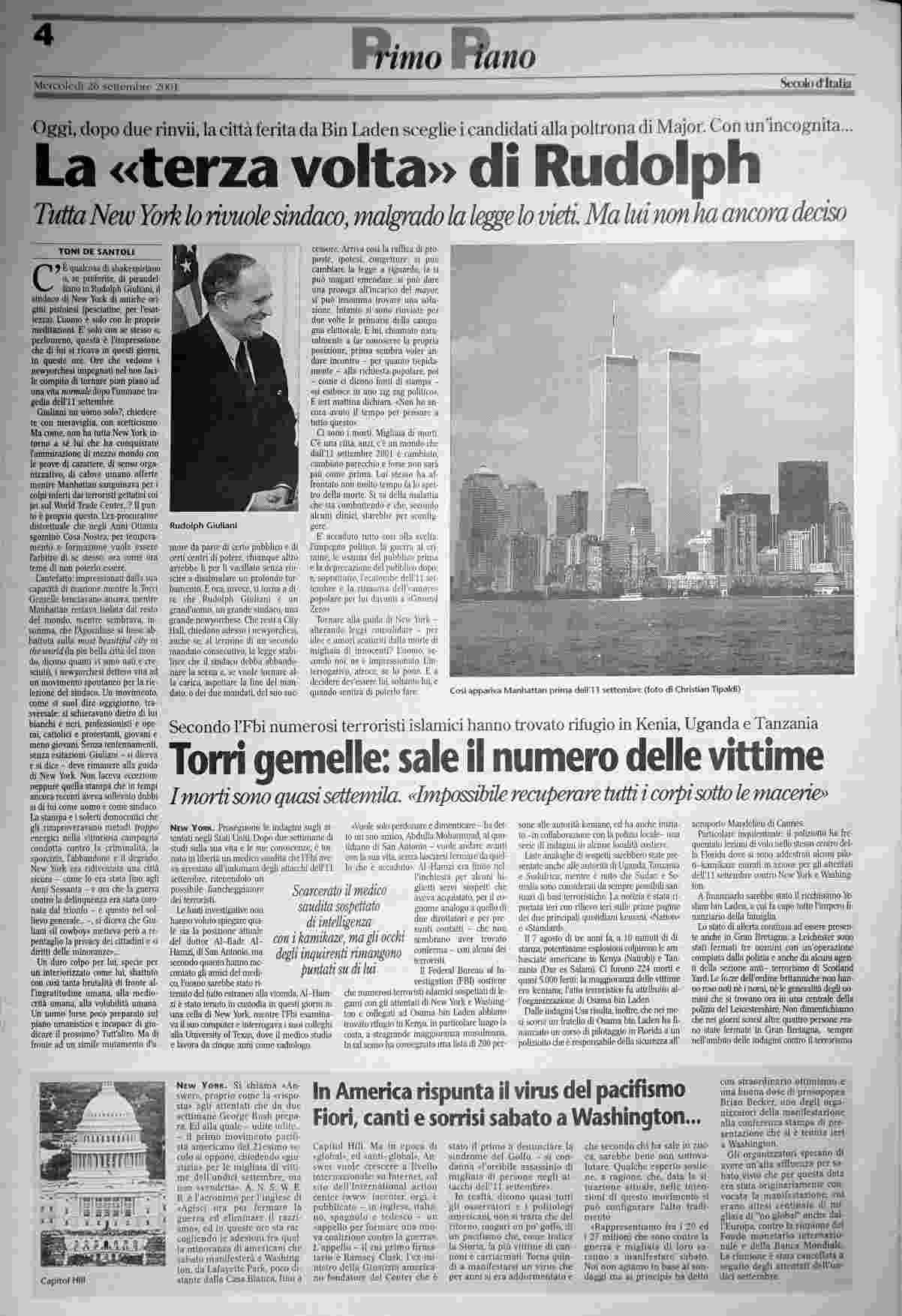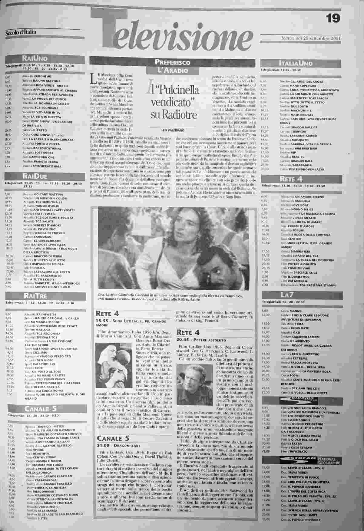 mercoledì 26 settembre 2001