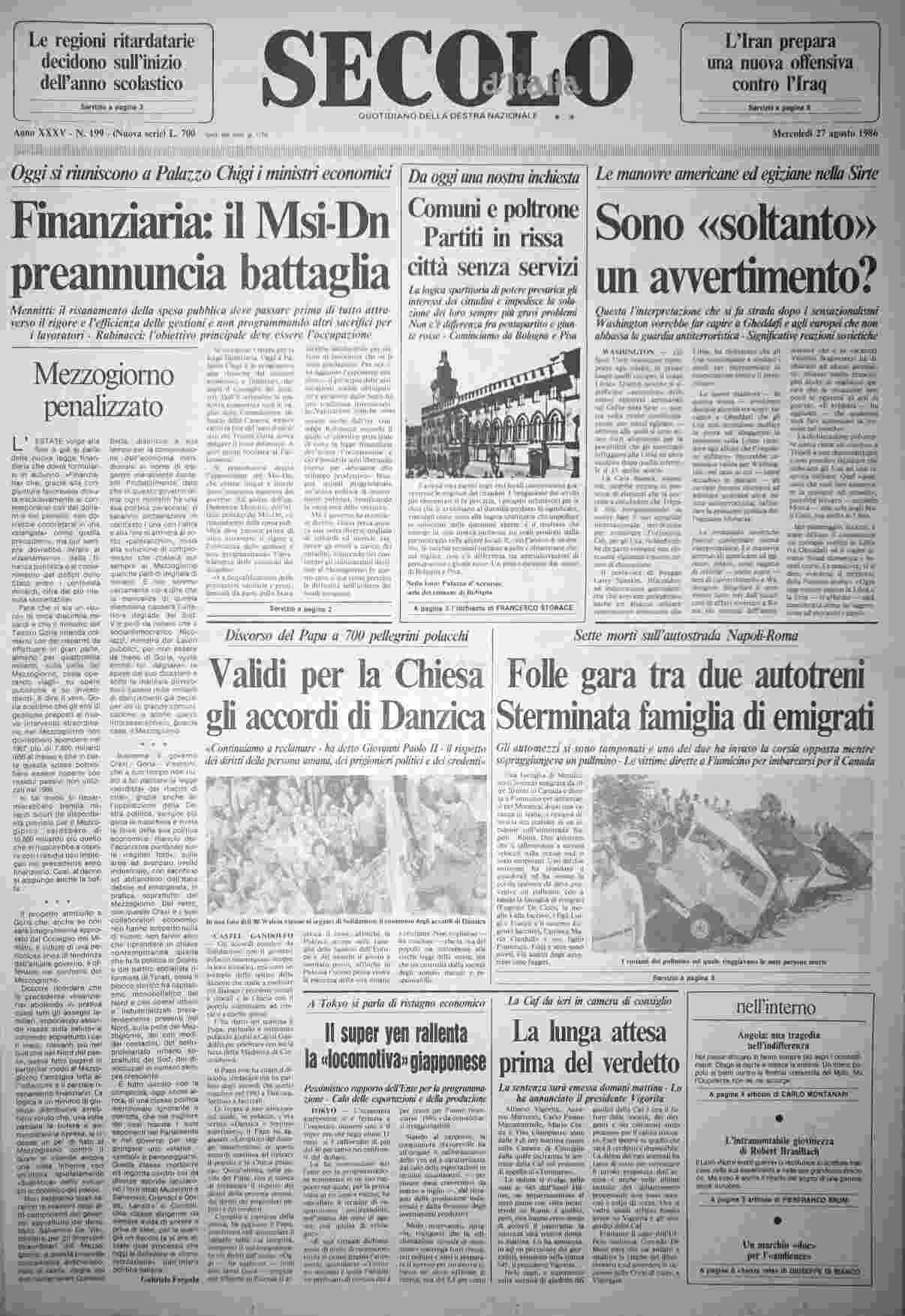 mercoledì 27 agosto 1986