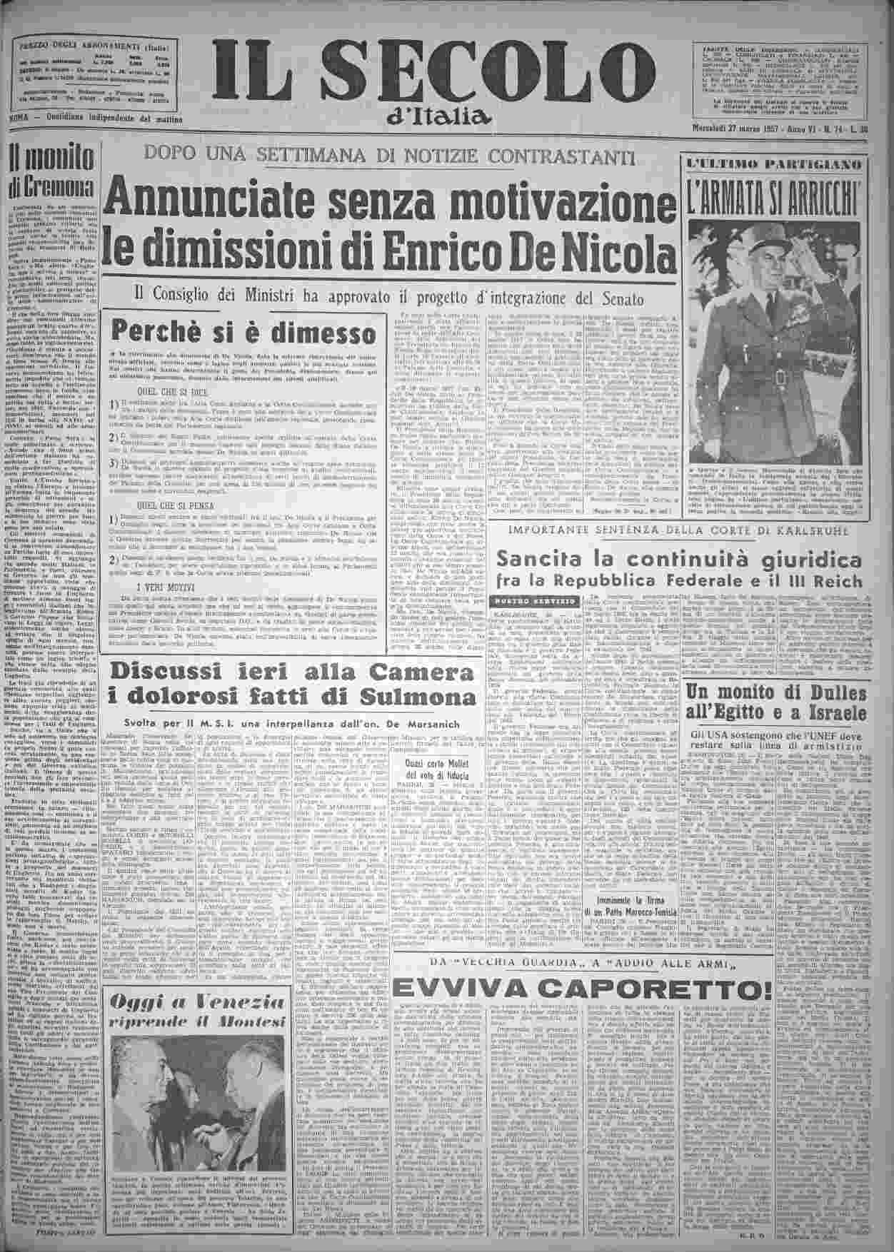 mercoledì 27 marzo 1957