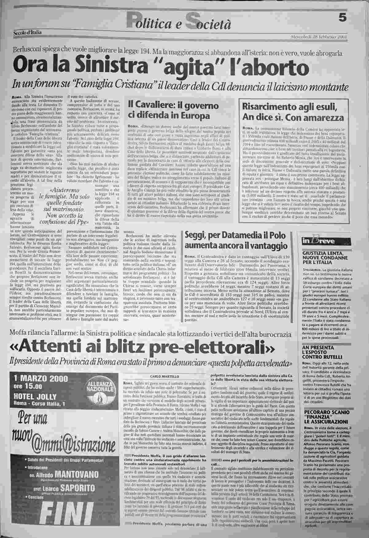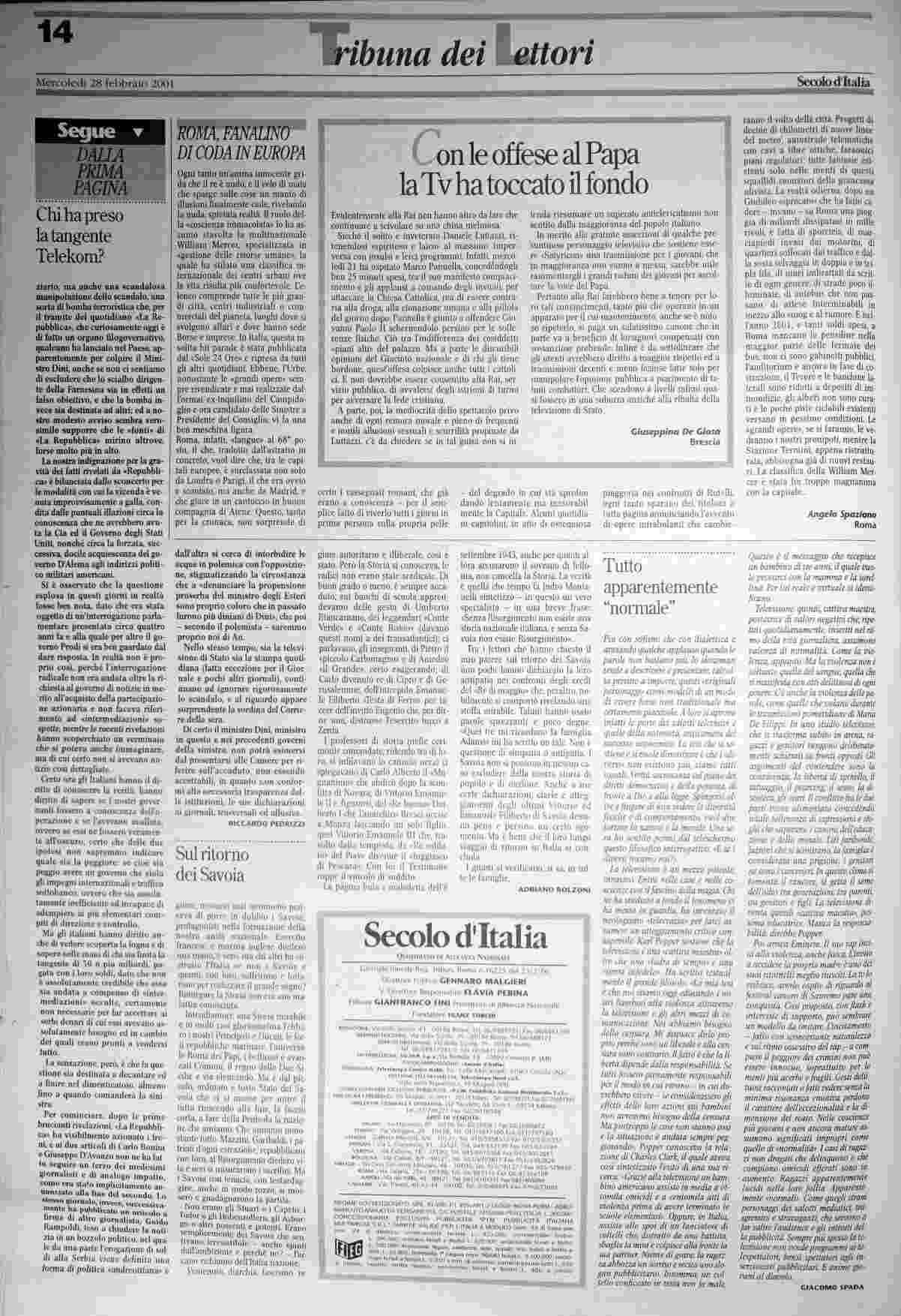 mercoledì 28 febbraio 2001