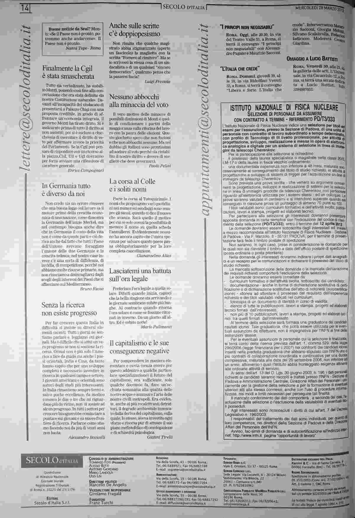 mercoledì 28 marzo 2012