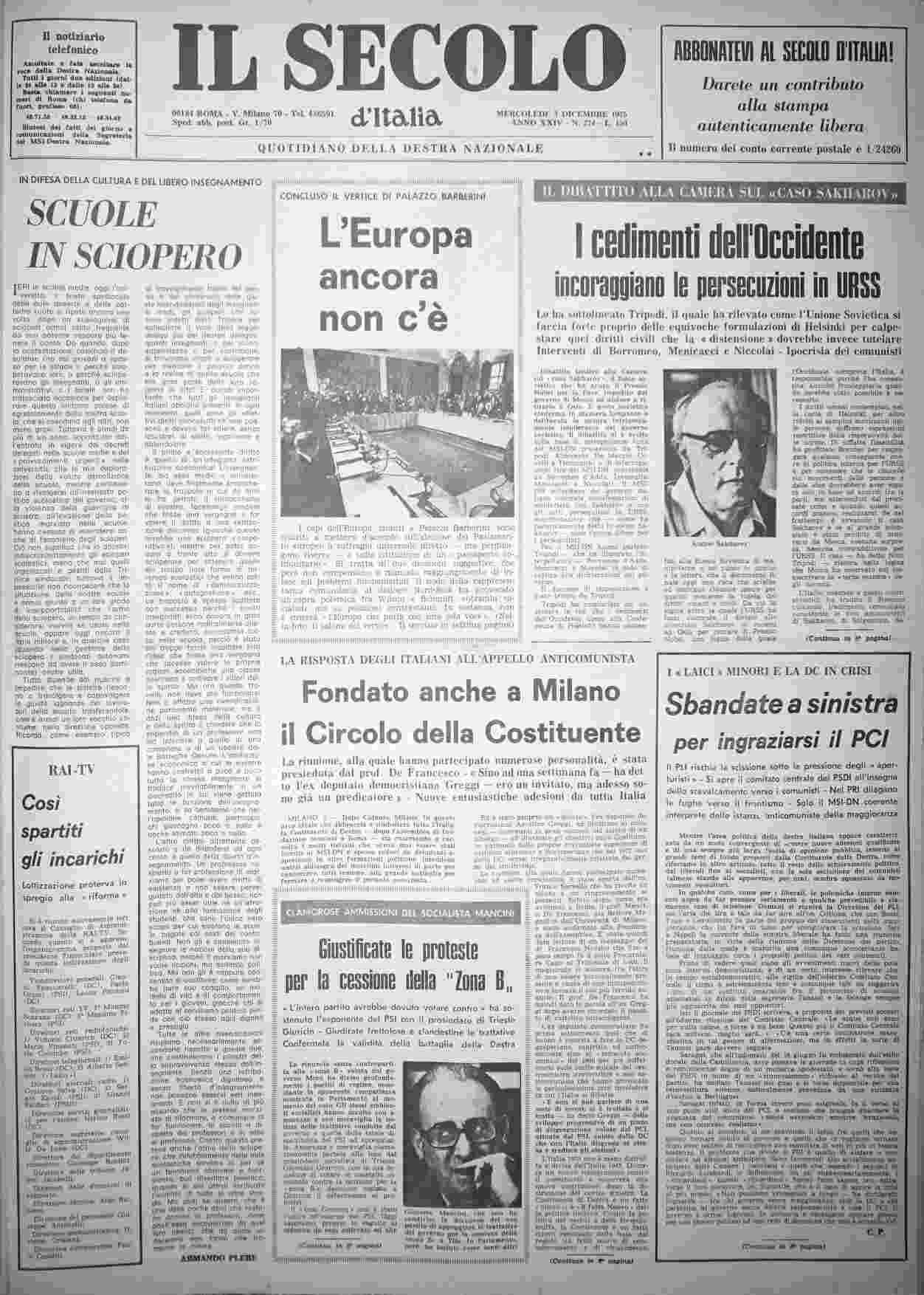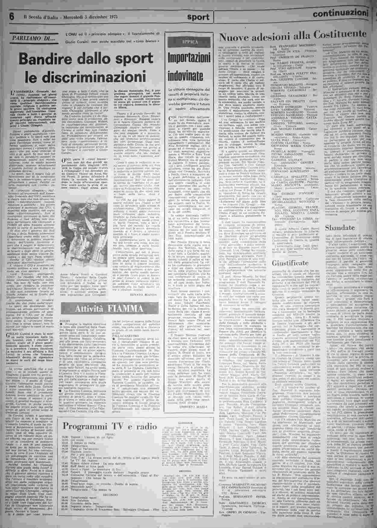 mercoledì 3 dicembre 1975