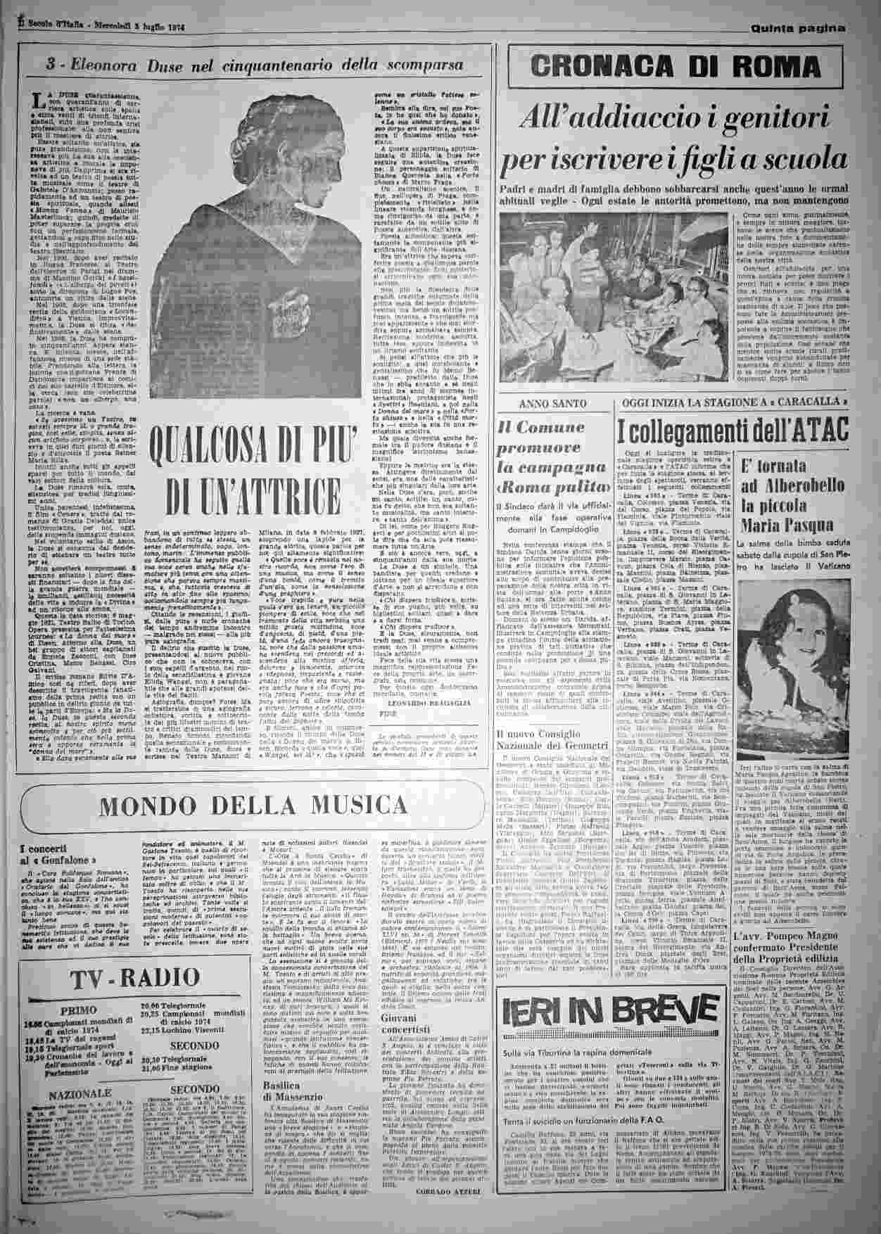 mercoledì 3 luglio 1974