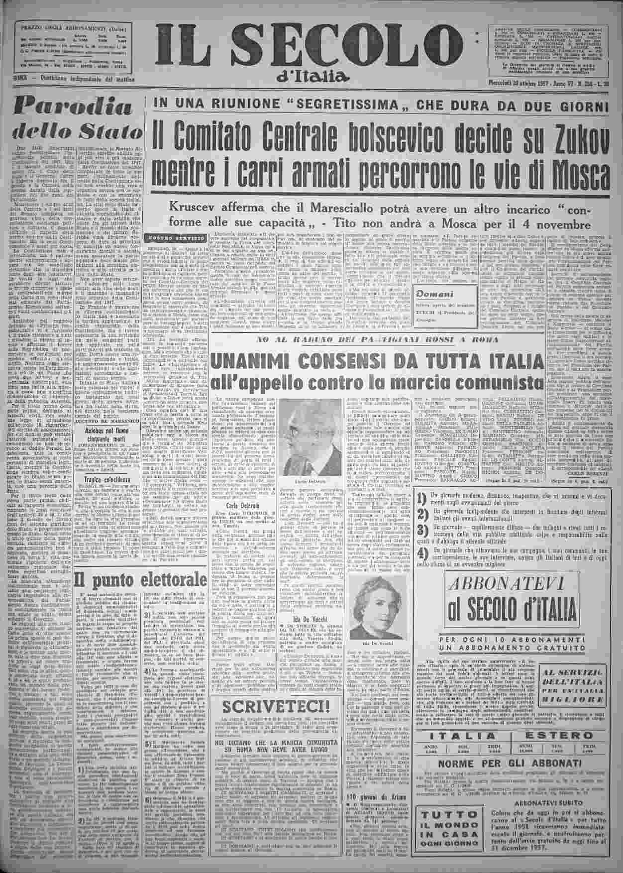 mercoledì 30 ottobre 1957
