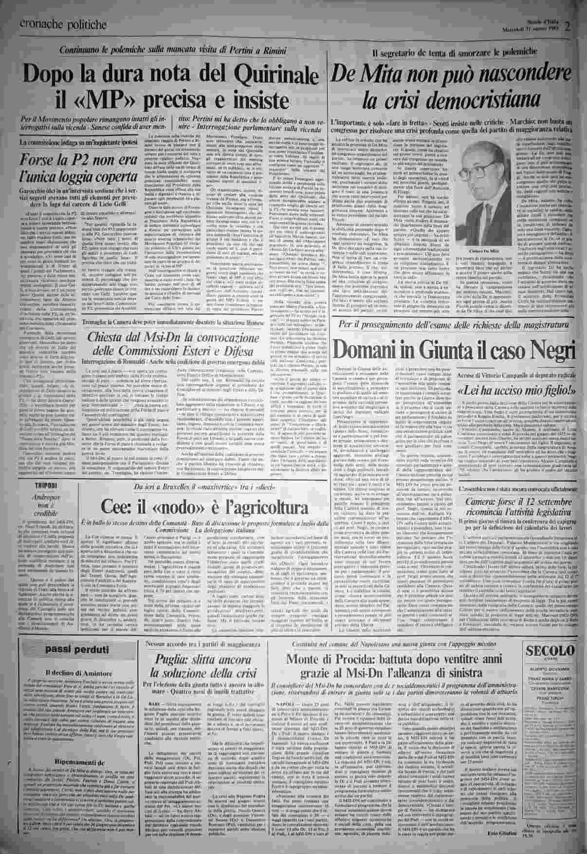 mercoledì 31 agosto 1983