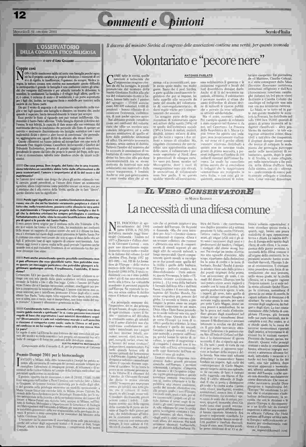 mercoledì 31 ottobre 2001