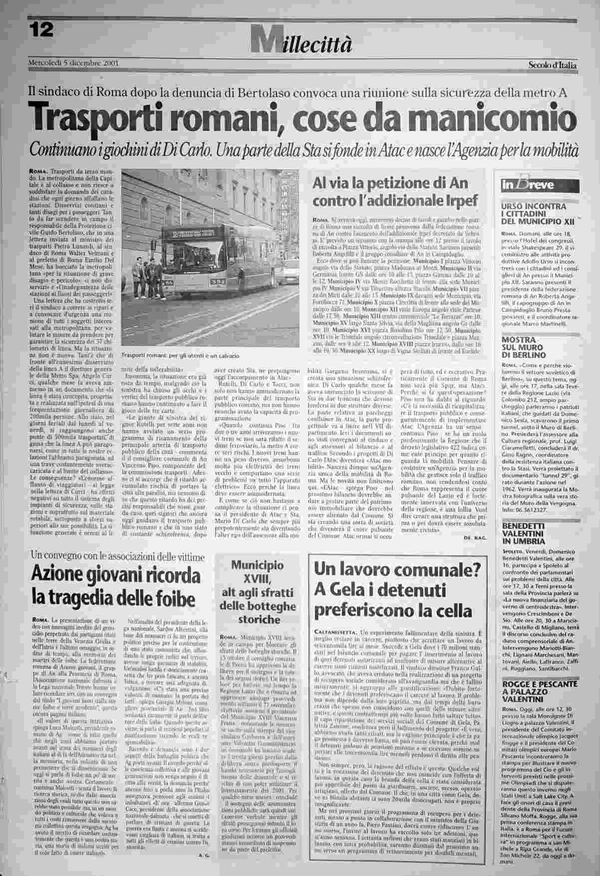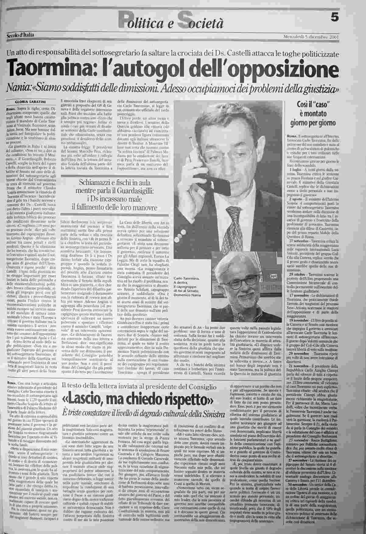 mercoledì 5 dicembre 2001