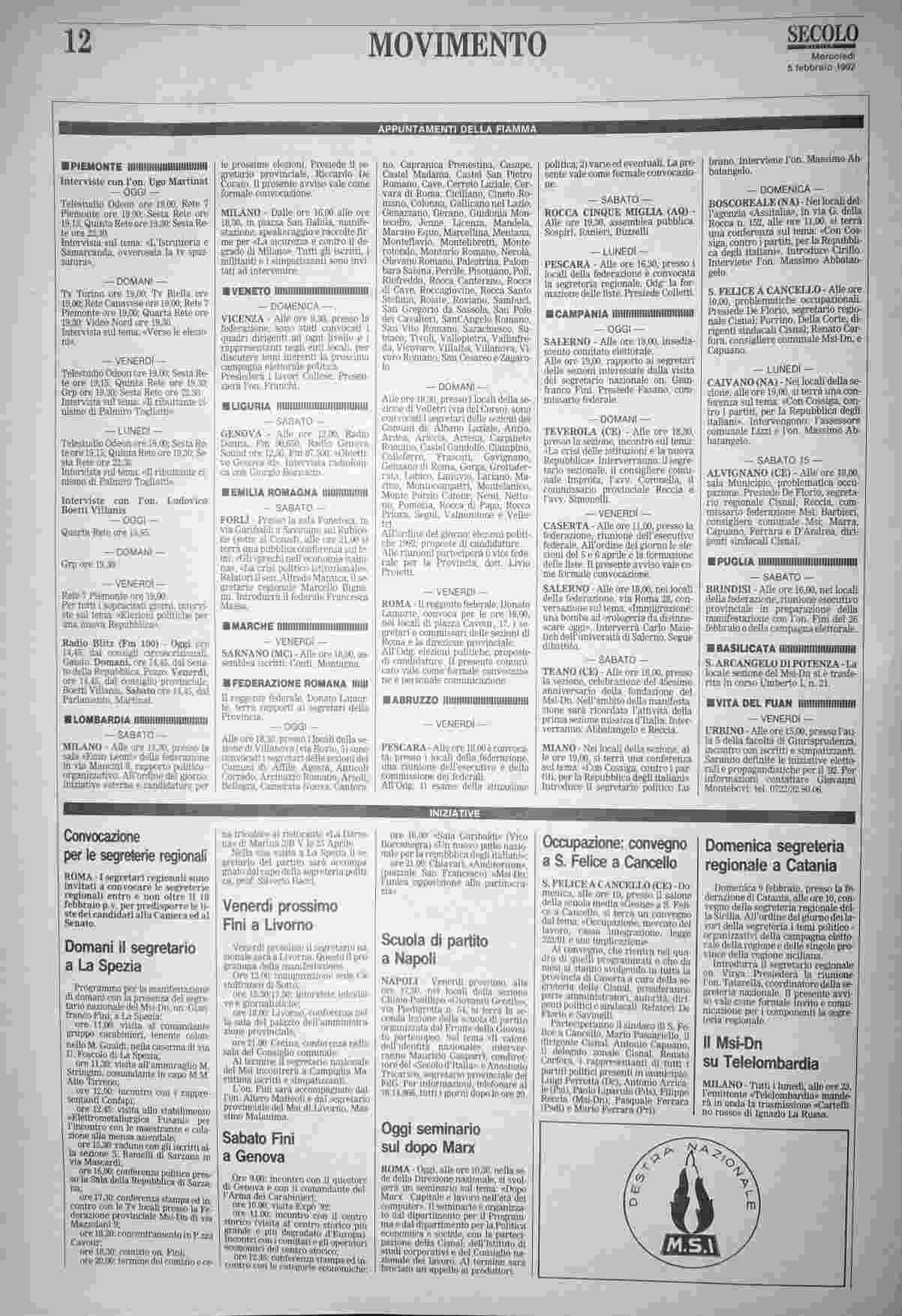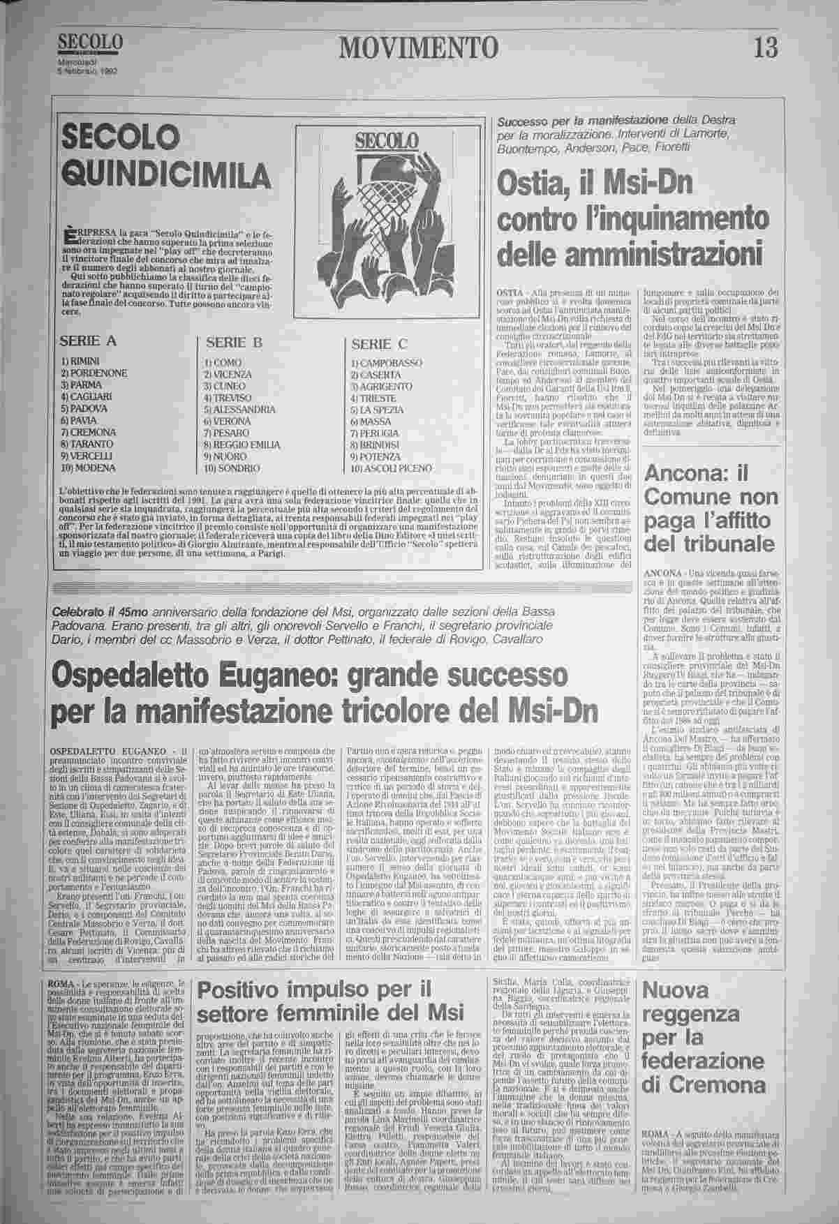 mercoledì 5 febbraio 1992